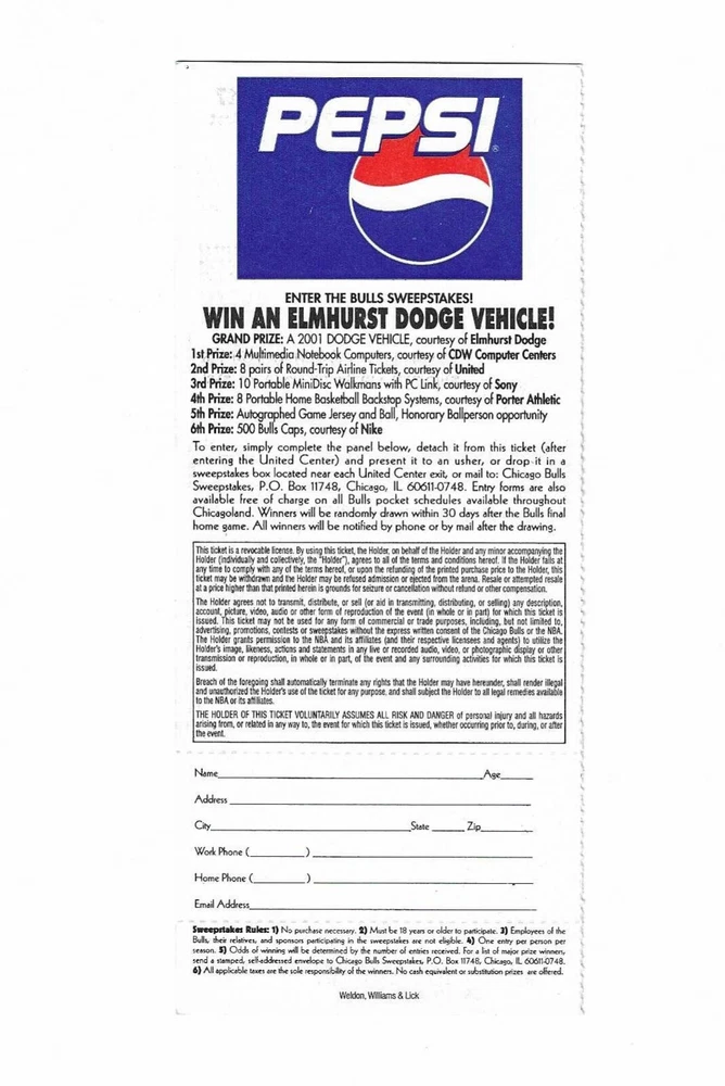 Chicago Bulls vs Cleveland Cavaliers Unused Basketball Ticket from 3/6/2001