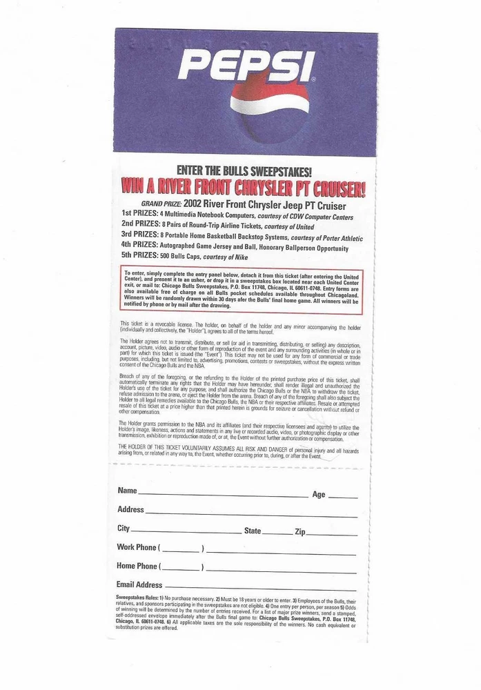 Chicago Bulls vs Denver Nuggets Unused Basketball Ticket From October 26, 2001 Here is 1 unused Chicago Bulls vs Denver Nuggets unused Basketball Ticket from October 26, 2001. The game took place at The United Center in Chicago, Illinois. The ticket is in good condition and would make an excellent addition to your collection. Payment Payment is due within 24 hours of sale. Shipping Your item will be shipped within 24 hours of receipt of payment via US Mail. Terms and Conditions All Sales are final. No Refunds
