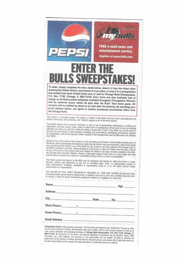 Chicago Bulls vs Golden State Warriors Unused Basketball Ticket From January 10, 2005 Here is 1 unused Chicago Bulls vs Golden State Warriors unused Basketball Ticket from January 10, 2005. The game took place at The United Center in Chicago, Illinois. The ticket is in good condition and would make an excellent addition to your collection. Payment Payment is due within 24 hours of sale. Shipping Your item will be shipped within 24 hours of receipt of payment via US Mail. Terms and Conditions All Sales are final. No Refunds