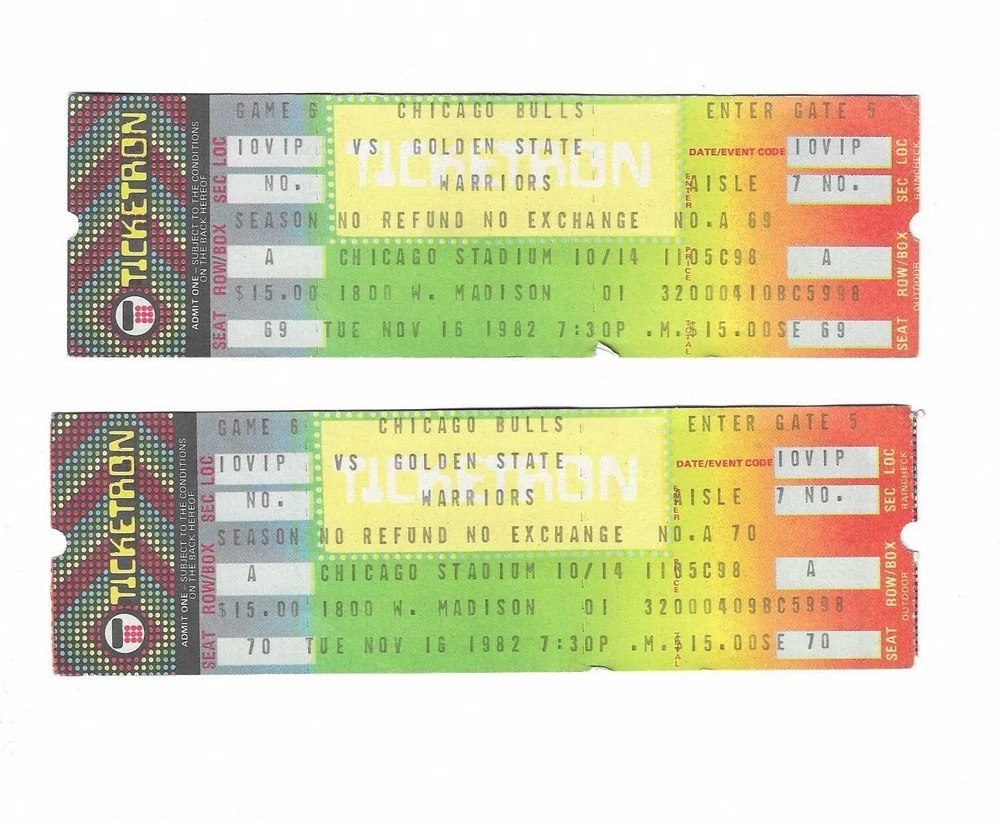 Chicago Bulls vs Golden State Warriors Unused Tickets from 11/16/1982