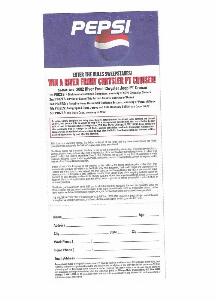 Chicago Bulls vs Los Angeles Clippers Unused Basketball Ticket From October 17, 2001 Here is 1 unused Chicago Bulls vs Los Angeles Clippers unused Basketball Ticket from October 17, 2001. The game took place at The United Center in Chicago, Illinois. The ticket is in good condition and would make an excellent addition to your collection. Payment Payment is due within 24 hours of sale. Shipping Your item will be shipped within 24 hours of receipt of payment via US Mail. Terms and Conditions All Sales are final. No Refunds