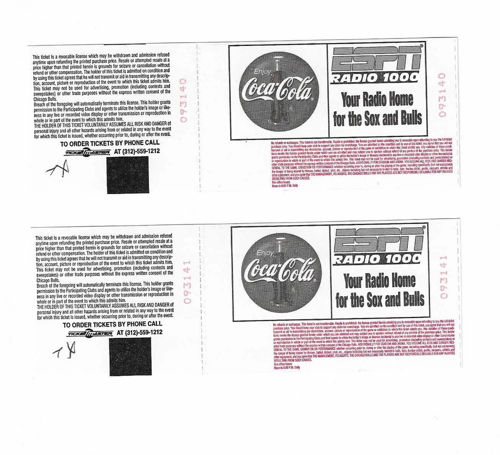Chicago Bulls vs Miami Heat Unused Basketball Tickets April 10, 1999