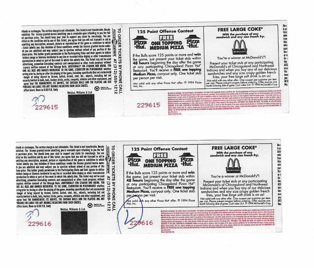 Chicago Bulls vs Portland Trailblazers Unused Basketball Tickets 3/6/1995