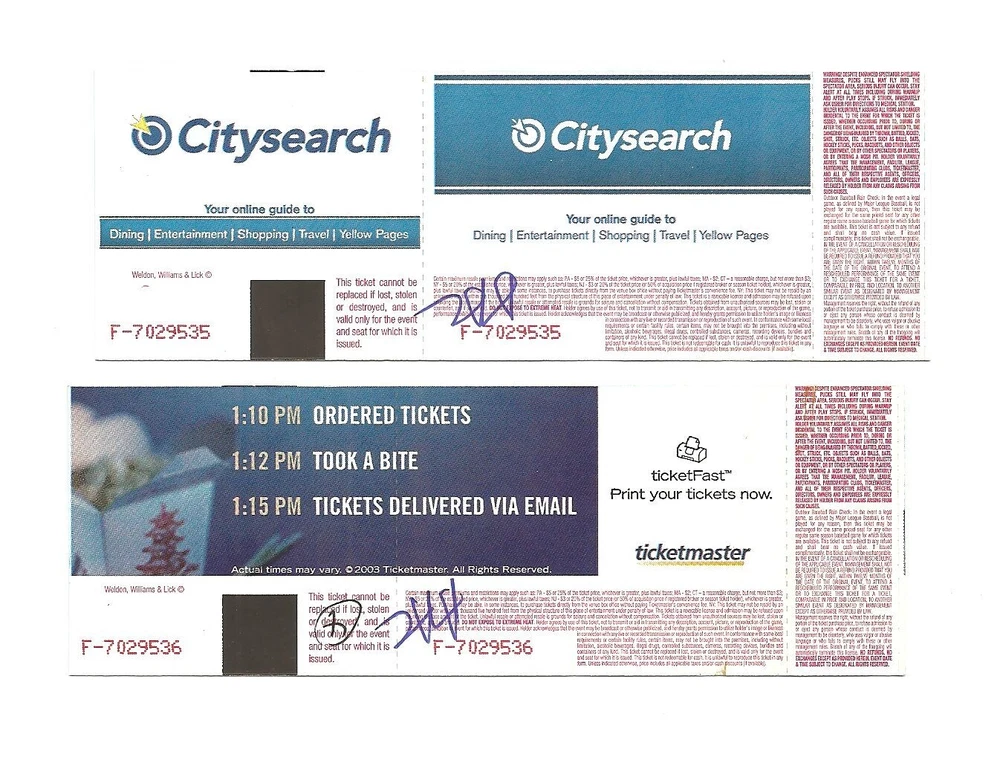 Chicago Bulls vs Seattle Supersonics Unused Basketball Tickets From March 15, 2005 Here are 2 unused Chicago Bulls vs Seattle Supersonics Basketball Tickets from March 15, 2005. The game took place at The United Center in Chicago, Illinois. The tickets are in fair condition and would make an excellent addition to your collection. Payment Payment is due within 24 hours of sale. Shipping Your item will be shipped within 24 hours of receipt of payment via US Mail. Terms and Conditions All Sales are final. No Refunds