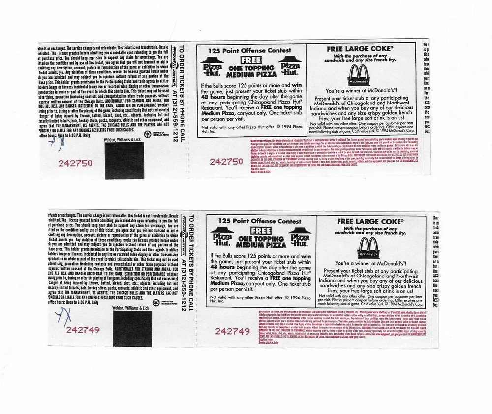 Chicago Bulls vs Washington Bullets Unused Basketball Tickets From October 29, 1994 Here are 2 unused Chicago Bulls vs Washington Bullets Basketball Tickets from October 29, 1994. The game took place at The United Center in Chicago, Illinois. The tickets are in good condition and would make an excellent addition to your collection. Payment Payment is due within 24 hours of sale. Shipping Your item will be shipped within 24 hours of receipt of payment via US Mail.