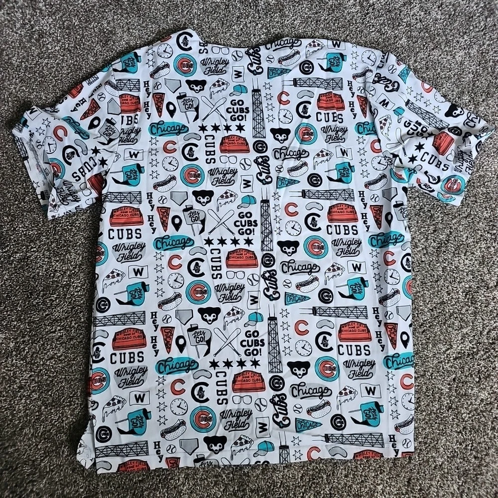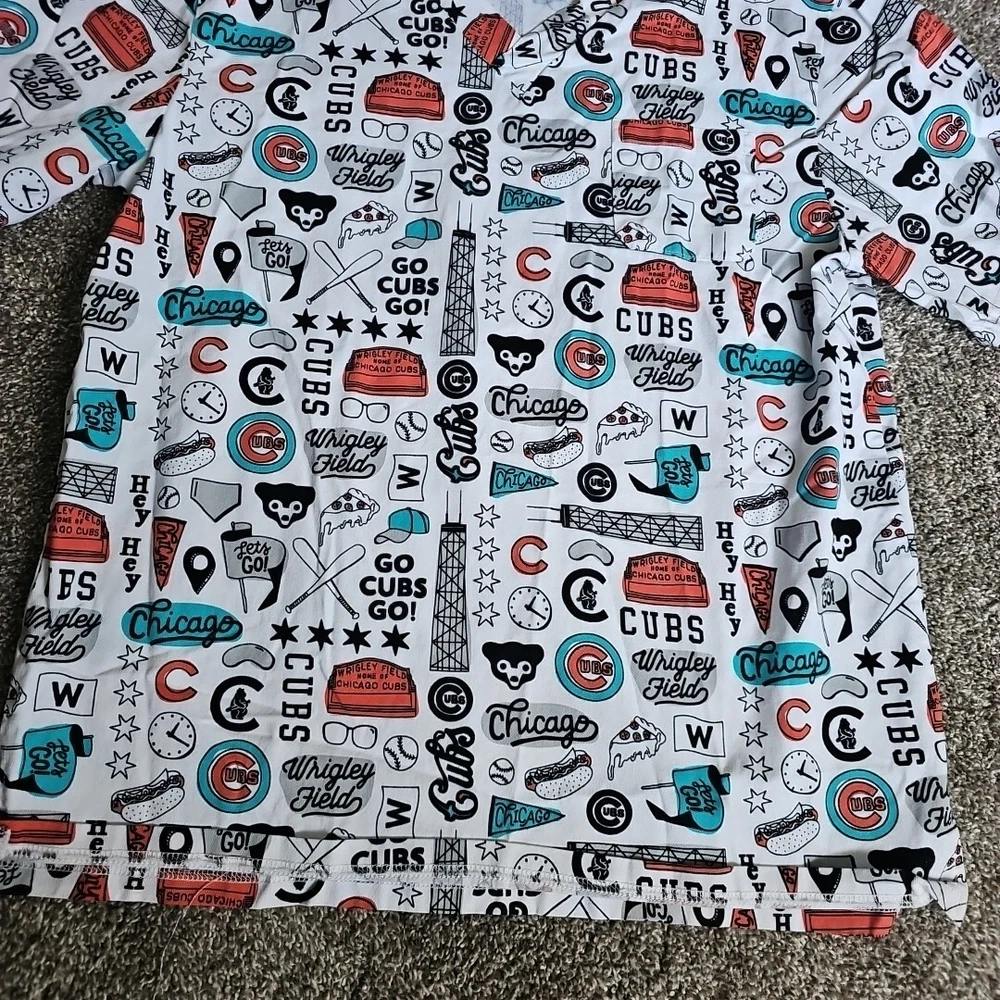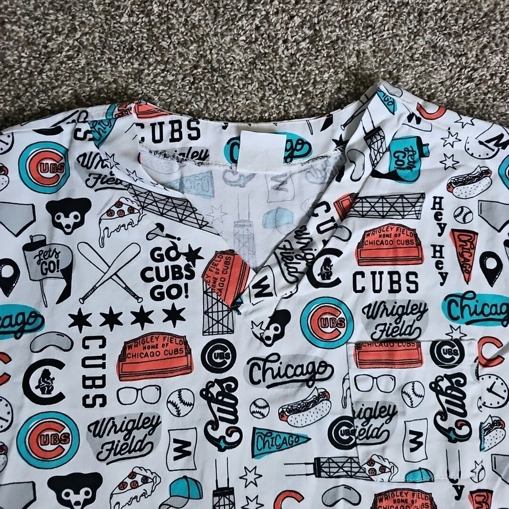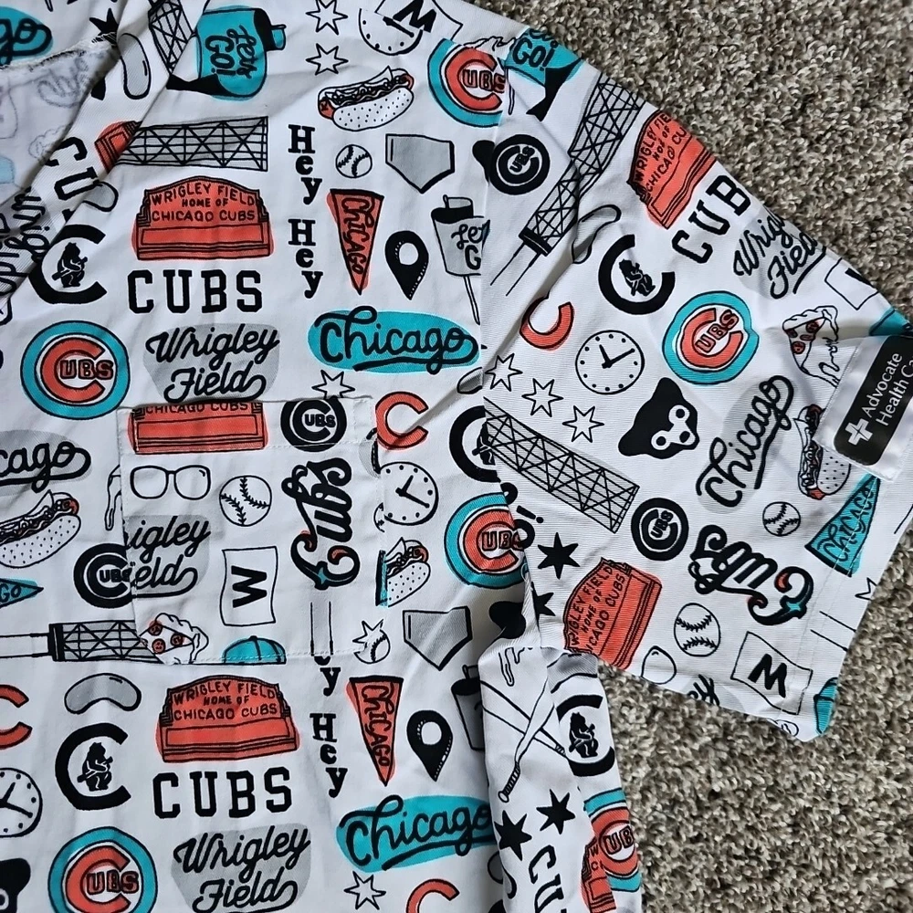 Chicago Cubs Wrigley Field Size Large White Medical Scrub Top Short Sleeve