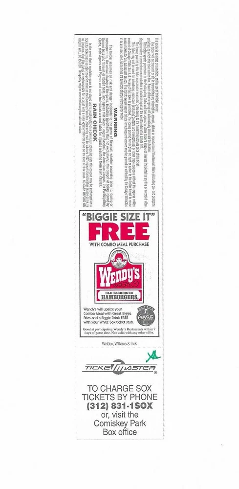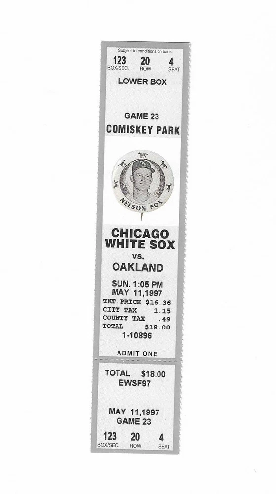 Chicago White Sox vs Oakland A's Unused Baseball Ticket From May 11, 1997 Here is 1 unused Chicago White Sox vs Oakland A's Baseball Ticket from May 11, 1997. The game took place at Comiskey Park in Chicago, Illinois. The ticket is in good condition and would make an excellent addition to your collection. Payment Payment is due within 24 hours of sale. Shipping Your item will be shipped within 24 hours of receipt of payment via US Mail.