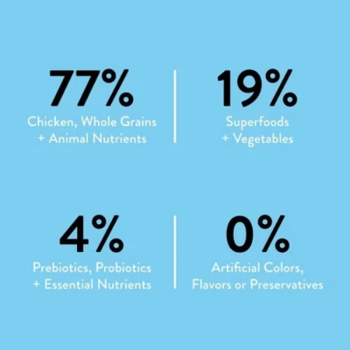 Important Note for Our Valued Customers: To offer you the best prices with free shipping, we occasionally experience shipping delays. If this happens, we’ll notify you immediately, issue a full refund, and invite you to place a new order at your convenience. To keep costs low, we sometimes reuse branded packaging boxes for shipments—we appreciate your understanding if you receive your order in repurposed packaging. Rest assured, all products we sell are 100% brand new, unopened, and freshly manufactured, including pet food and human-grade items, with a minimum 8-month shelf life remaining. If any issues arise, please contact us first—we’re committed to resolving them quickly. If you’re not completely satisfied, we offer a full refund with no hassle. Thank you for your trust and support! Description Why NOOD? Because we are pet food with nothing to hide. With us, you'll only find 100% traceable recipes with cage-free chicken as the main ingredient. Our Nood dog food has superfoods like spinach and blueberries, and finished with probiotics and a range of vitamins and minerals… No added this, no extra that, no pesky fine print. highlights Real Meat 1st Ingredient Packed full of Superfoods + Probiotics 100% traceable ingredients Vet + Nutritionist approved recipes Suitable for All Life Stages Amount : % Daily Value* Crude Protein (Min) 28% Crude Fat (Min) 16% Crude Fiber (Max) 4% Moisture (Max) 10% Calcium (Ca) (Min) 1.3% Phosphorus (P) (Min) 0.9% Docosahexaenoic Acid (Min) 0.17% Vitamin A 15000IU Vitamin D 1500IU Omega-3 0.3% Linoleic Acid (Min) 2.1% enterocococcus faecium minimum 450000000CFU/lb * Percentage of Daily Values are based on a 2,000 calorie diet. Ingredients: chicken, corn, pearled barley, poultry meal, peas, pea starch, meat and bone meal, pork fat (preserved with mixed tocopherols), natural flavor, hydrolyzed chicken, dried plain beet pulp, salmon oil, dried chicory root, monosodium phosphate, flaxseed, brewer's dried yeast, minerals (zinc sulfate, iron sulfate, copper sulfate, manganese sulfate, calcium lodate, sodium selenite), vitamins (vitamin e supplement, vitamin d supplement, vitamin a supplement, thiamine mononitrate, riboflavin, niacin supplement, calcium pantothenate, pyridoxine hydrochloride, folic acid, vitamin b12 supplement), choline chloride, monosodium phosphate, blueberries, sweet potato, carrots, spinach, apples, turmeric, peppermint, dried enterococcus faecium fermentation product, rosemary extract. Allergens & Warnings: Contains a source of live (viable) microorganisms.