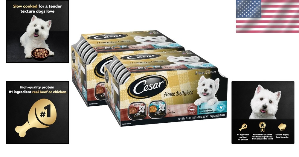 Chicken & Vegetables Dinner in Sauce – Home Delights Wet Dog Food, 3.5 oz Trays ‹ › ‹ › ‹ › ‹ › ‹ › ‹ › ‹ › ‹ › ‹ › ‹ › ‹ › Chicken & Vegetables Dinner in Sauce – Home Delights Wet Dog Food Indulge your beloved canine with the gourmet experience of Home Delights Wet Dog Food , crafted with care to keep your furry friend nourished and happy. Product Details: Size: 3.5 oz Trays #1 Ingredient: Real Beef or Chicken Key Features: Made with real beef or chicken as the primary ingredient for a mouthwatering, protein-rich recipe. Crafted in the USA with ingredients sourced globally, ensuring top-notch quality. Contains no fillers, added sugar, or artificial flavors; all ingredients are natural as defined by the AAFCO. 100% complete and balanced nutrition for adult dogs, serving as a delectable meal or as a topper for dry kibble. Slow-cooked for a juicy texture that dogs can't resist, making mealtime a joyful occasion. Benefits: Crafted with high-quality protein to support muscle health and vitality. Easy to digest, ensuring your dog enjoys their meal without discomfort. Convenient single-serve trays ensure fresh servings every time, perfect for busy pet owners. Enhances the taste of dry kibble, encouraging picky eaters to relish their meals. Why Choose Home Delights? Make mealtime an exquisite affair with Home Delights Wet Dog Food . Each tray is packed with juicy chicken or beef and a medley of vegetables, ensuring a healthy, balanced diet for your cherished pet. With gourmet flavors and top-quality ingredients, every bite delivers the love and nourishment your dog deserves. Show your furry companion just how much they mean to you. Treat them to the luxurious taste of Home Delights and watch their tails wag with joy! Shipping Free & Fast Shipping - We offer free shipping to most of the USA with a normal delivery time of 3-7 days. However, due to the current situation, additional delivery time (up to 3 weeks) may be required for some items. Alternative Carriers - We may use alternative carriers (e.g. USPS, FedEx, UPS, etc.) to ensure your package arrives safely and on time. Due to the use of multiple carriers, we are unable to provide a tracking number automatically. Handling Time - Orders are processed and shipped within 1-2 business days of receiving cleared payment. Shipping Restrictions - Shipping to Alaska, Hawaii, Puerto Rico, Guam, and other US territories may incur shipping charges or delivery restrictions. Please contact us before ordering, or your order can be refunded/cancelled. State Restrictions - There may be restrictions based on your state of purchase. For example, certain items may not be shipped to California due to state regulations. Contact for Tracking Updates - If you require tracking updates or have any concerns about the delivery of your order, please feel free to contact us, and we will be happy to assist you. Return 30-Day Hassle-Free Returns - We want you to be completely satisfied with your purchase. If you are not, you can return the item within 30 days of receiving it for a full refund or exchange. Easy Return Process - To start a return, simply contact us and we will provide you with a prepaid return shipping label and detailed instructions. Restocking Fee - There are no restocking fees for returns. However, the buyer is responsible for return shipping costs if the return is not due to a seller's error. Refund Processing Time - Refunds will be processed within 5 business days of receiving the returned item in its condition. Payment We accept all major credit cards, PayPal, and Apple Pay for your convenience. Your payment information is secure and encrypted to ensure a safe and seamless transaction. Please complete your payment within 3 days of purchase to avoid any delays in shipping. Feedback Your feedback is extremely important to us. We strive to provide the best products and customer service possible. If you are satisfied with your purchase, please take a moment to leave us a positive review. If you have any concerns or issues with your order, please contact us before leaving negative feedback. We are committed to resolving any problems and ensuring your satisfaction. Contact Us If you have any questions or concerns, please feel free to out to our customer support team. You can contact us through the eBay messaging system. We are available Monday to Friday, 9:00 am to 5:00 pm EST, and we will do our best to respond to your inquiry within 24 hours. Buy it now and enjoy a pleasant shopping experience! Unit Quantity: 24 Dog Size: Small Features: High Protein,No Fillers,Slow Cooked,No Artificial Flavors,No Artificial Colors,Easy to Digest,Natural Ingredients,High Quality,Convenient Trays Type: Wet Food Life Stage: Adult Main Ingredient: Chicken