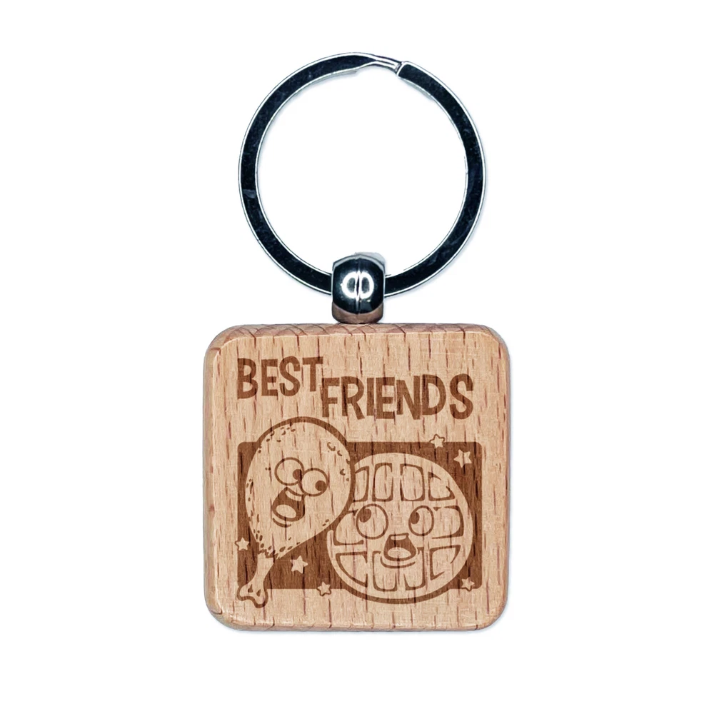 Chicken and Waffles Best Friends Engraved Wood Square Keychain Tag Charm