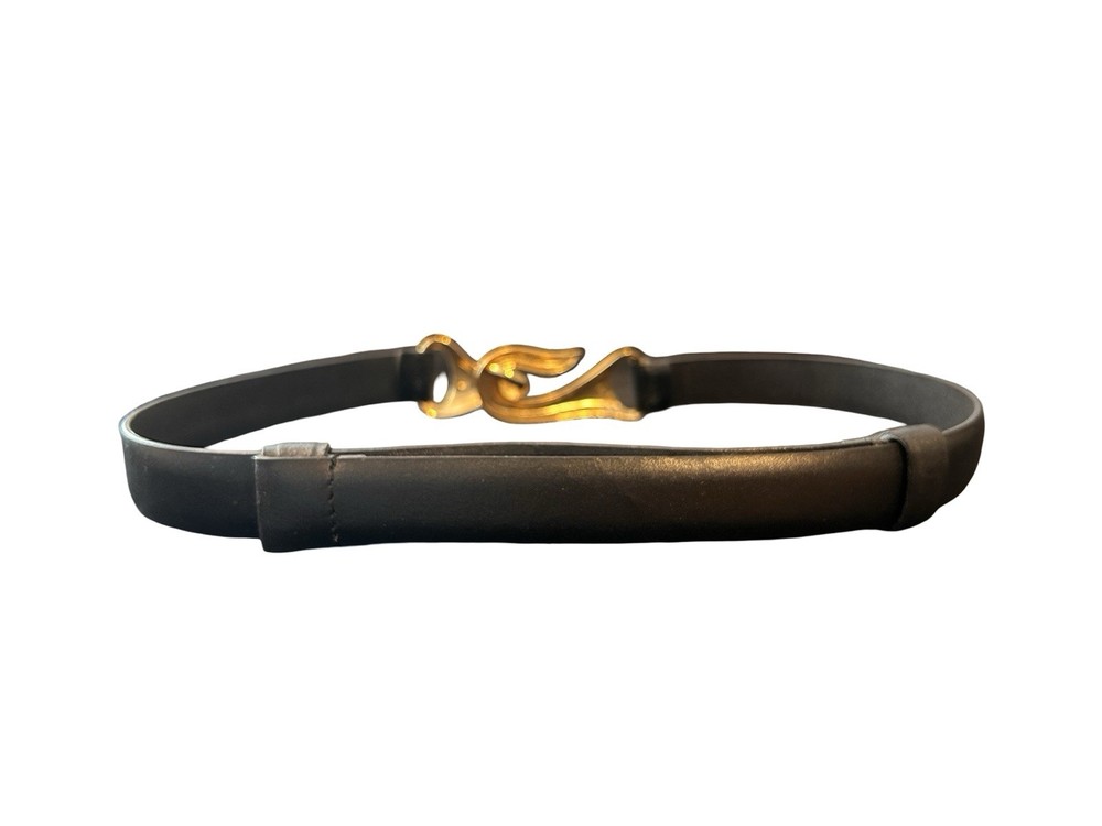 Chico's Black Leather Belt Sculptural Gold Hook Buckle Women Size S/M Adjustable Good used condition. Normal signs of wear and use. There are some minor scratches. Please study pictures carefully before purchasing Feel free to ask any questions. Thank you for visiting our store! Bnmisc10