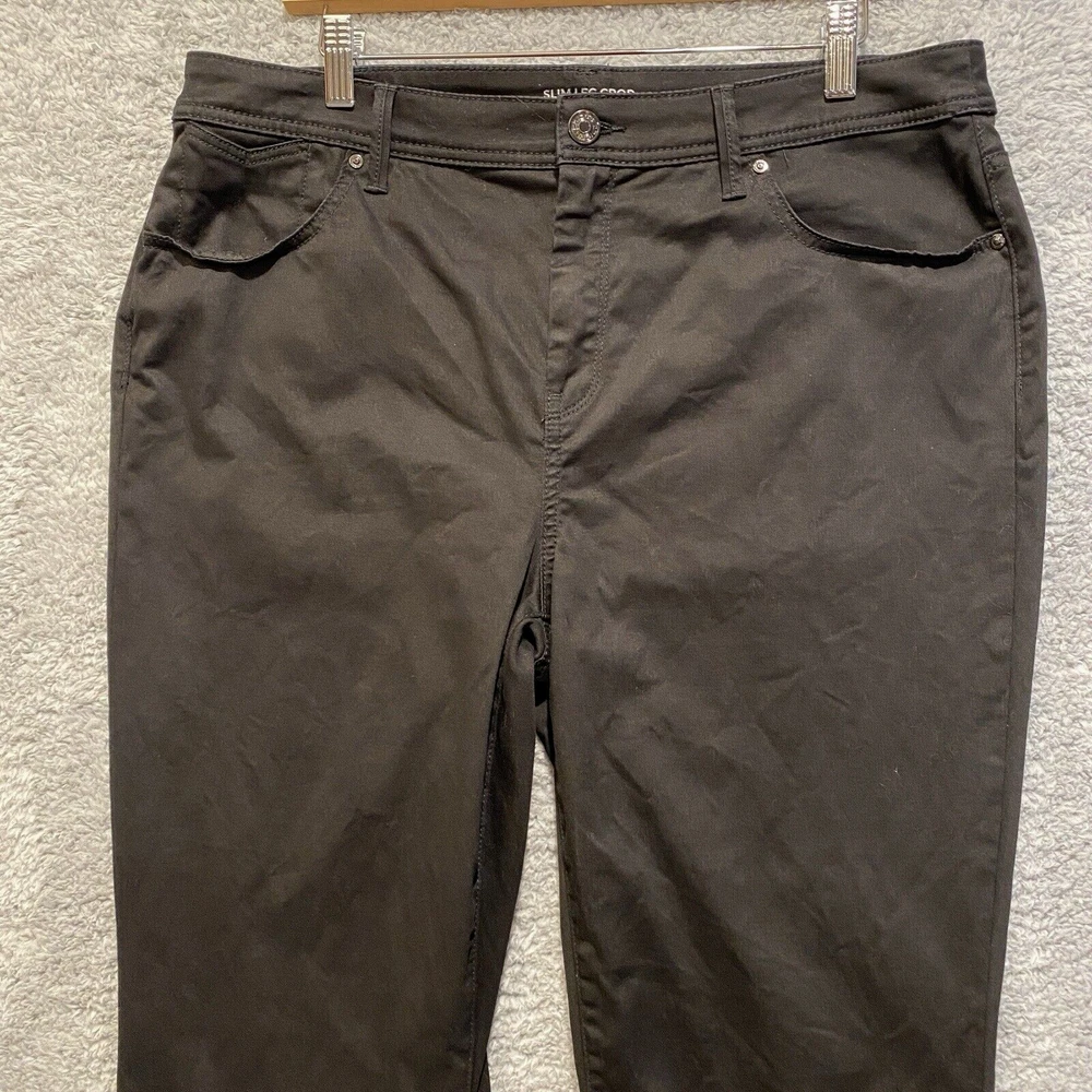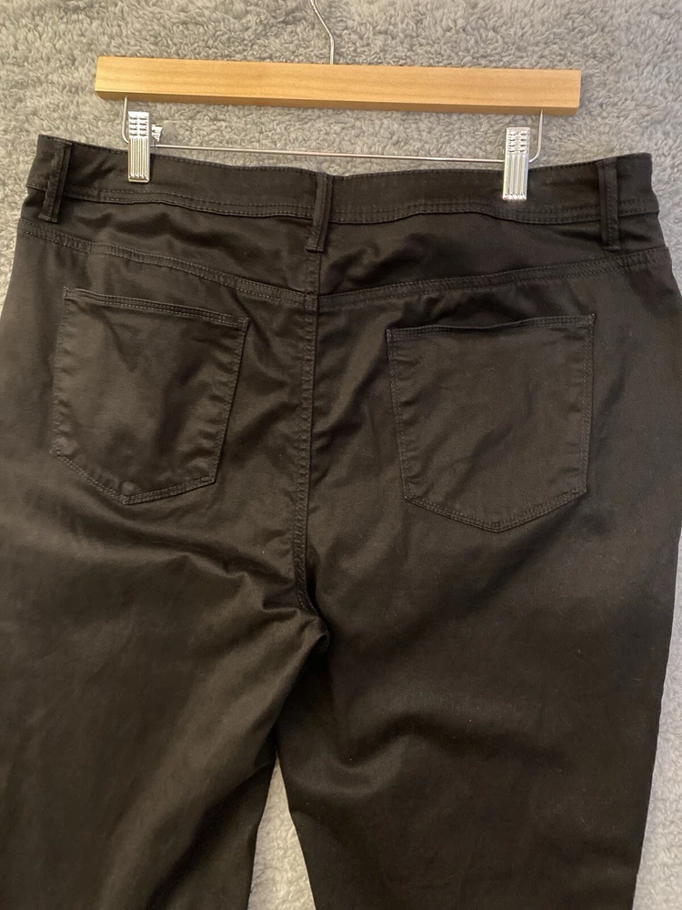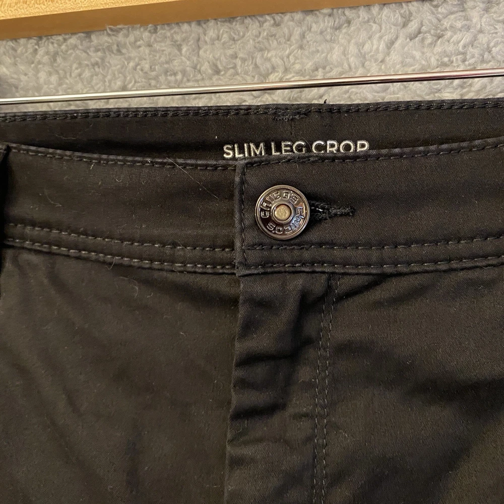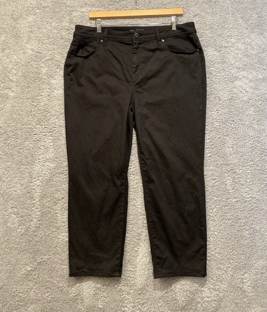 Chicos Crop Pants Capri Size 14 Black High Rise Straight Leg Stretch 34x23 Very good condition. No rips or stains. Color is not faded - fully black, hard to capture color in pictures. Waist: 34" Hip seam to seam: 20.5" Rise: 12" Length: 23" Ankle Width: 7" Ships by USPS Ground Advantage.