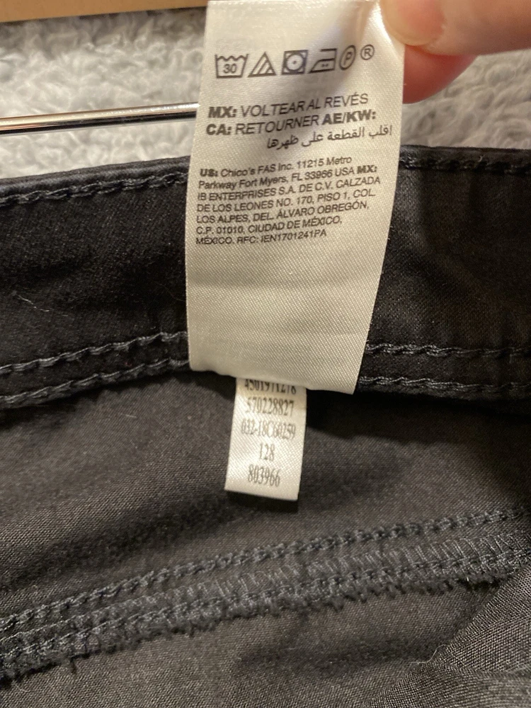 gtin13: Does not apply Personalize: No UPC: Does not apply Color: Black Leg Style: Straight Pattern: Solid Type: Pants Theme: City, Nature, Retro, American, Classic, Travel, Vacation Size Type: Regular Season: Fall, Spring, Summer, Winter Rise: High (Greater than 10.5 in) Country/Region of Manufacture: Vietnam Fabric Type: Knit Occasion: Business, Casual, Travel Brand: Chico's Closure: Button, Zip Waist Size: 34 in Vintage: No Seller Notes: “Very good condition. Dark black-not faded.” Features: Comfort, Crop, Easy Care, Pockets, Slimming, Stretch, Flat Front Inseam: 23 in Size: 14 Garment Care: Machine Washable Fit: Regular Front Type: Flat Front Style: Capri Material: Cotton, Lyocell, Rayon, Spandex, Viscose Department: Women Handmade: No