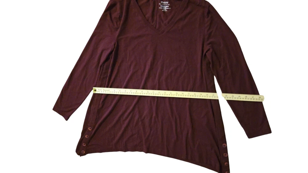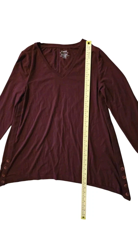 Chico's Size 2 Large Tunic Maroon Pima Cotton/Modal/Spandex Boho Lagen Look