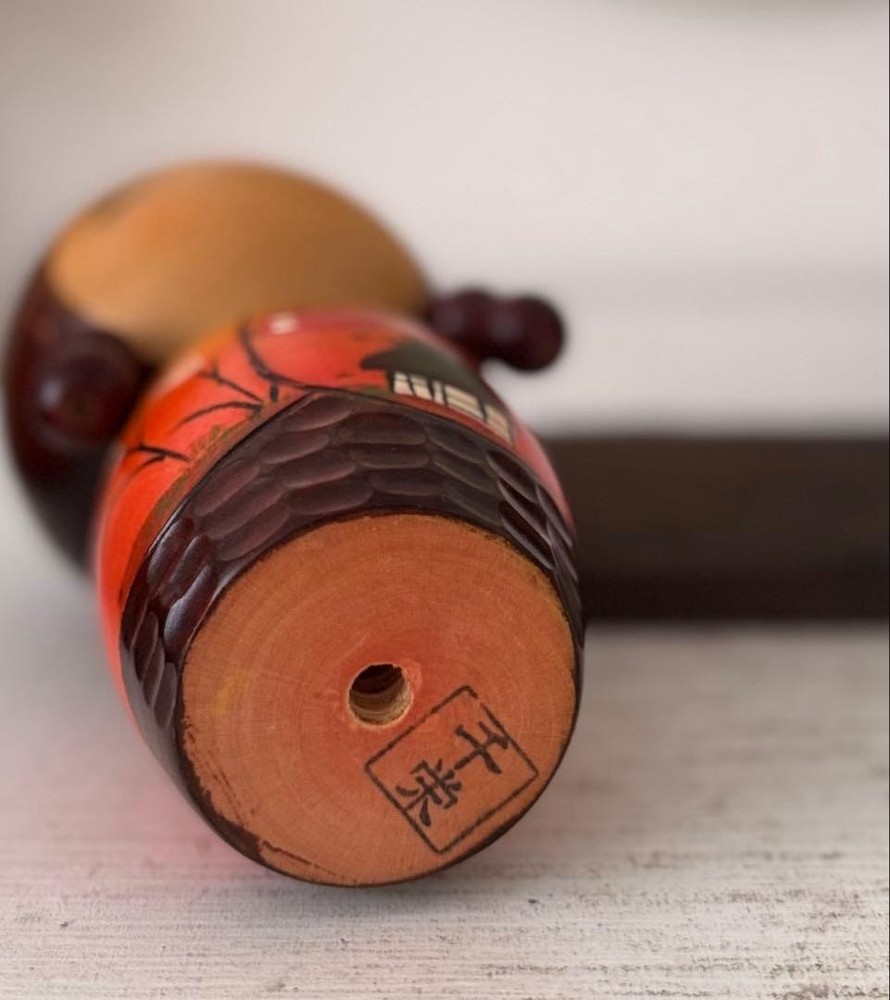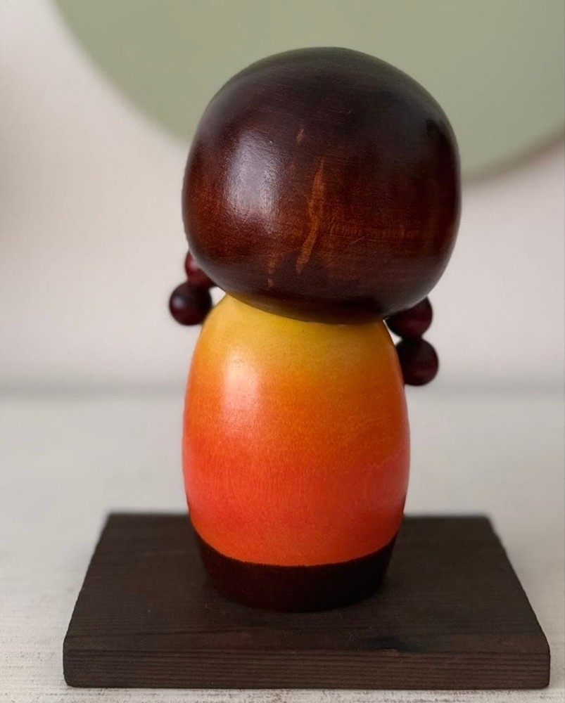 Chie Tamura Kokeshi Doll 14cm Handmade Orange Red Gradient Cute Design