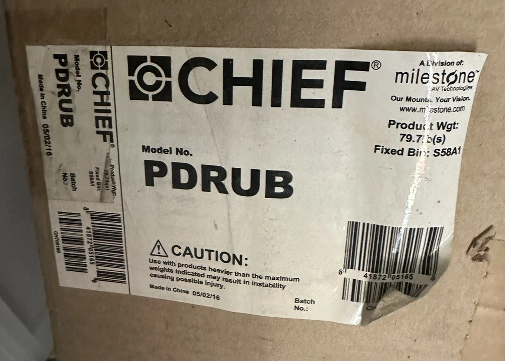 Chief Reaction Full-Motion TV Wall Mount for 42"-71" TVs - Extends 37" PDRUB BN Serial Number:CH705160 New in original box. The PDR flat panel dual swing arm wall mount allows for perfect LCD or Plasma TV placement. The industrys longest extension arm at up to 37 inch ensures perfect viewing from any angle.