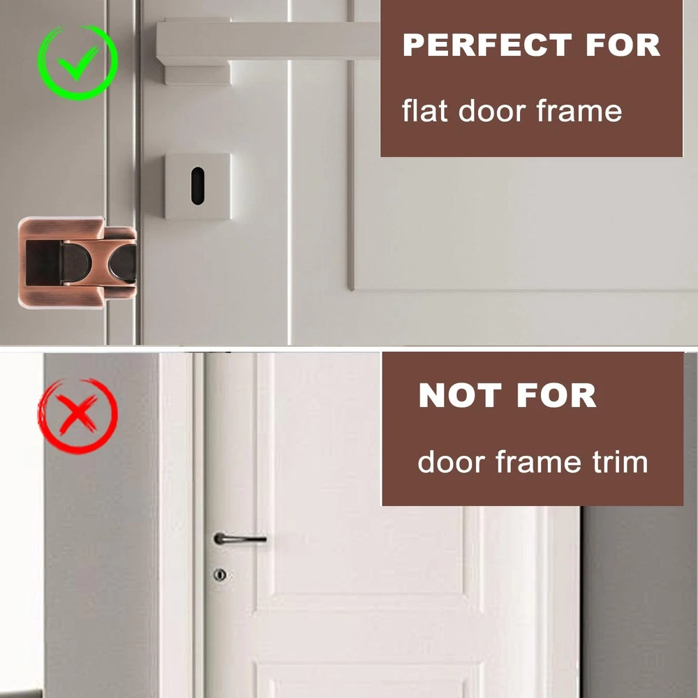 Enhance the security of your home with a reliable door lock system. This sturdy and durable lock offers robust protection against unwanted entry, giving you peace of mind. Easy to install and operate, it features a secure locking mechanism that ensures your doors remain firmly shut. With its sleek design, this lock seamlessly blends into your home's decor while providing an extra layer of safety. Upgrade your home's security today with this high-quality door lock solution. [Upgraded Version One-piece Design] Door locks made of zinc alloy with one-piece design. More robust and durable. withstand 800Ibs of force,12 times stronger than a normal deadbolt against being kicked in.. We equipped each door lock latch with 8 screws, including 6 long and 2 short, which you can choose according to your needs. Our safety door lock guard your home safe. This reinforcement lock is a good choice for home security. And the perfect gift for your families. 【Easy Install and Use 】Make installation a breeze with screws. Need drilling on door frame and come with stainless steel screws.It only takes a few minutes to install and one second to close. The Installation manual is included in the package.Please adjust the tightness before installation with the screws on the back.Door latch only use for your door opening inwards. 【Child Proof Locks】Home reinforcement door latch for kids safety with an Arc design, unable to unlock the door with a hook, It can be installed higher to prevent children from opening the door to strangers or going out. 【Keep Home Security】Security door Lock adds extra security measures for your family members while you are away on business. Suitable for both elderly parents and ladies when they are at home alone.keep your family peace in mind.Door latch can be installed at home for home security and in hotels for personal safety,extra hotel door lock and extra home reinforcement.Home security door lock defend your home safe, not only prevent break-in but also easily opens when meeting urgently. 【Compatible with Flar Door 】Room door lock compatible with flar door and only applied door opening inward. Idea for apartments,dormitories,Hotel,bedrooms and other people in need.house warming gifts brings you additional safety, security, and privacy.