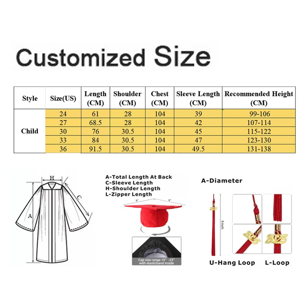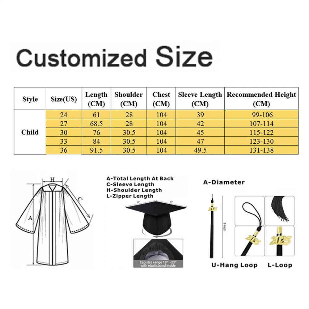 Children's Primary School Graduation Gown, Cap And Stole Kids School Uniforms Bullet Points: Set The Perfect Scene: Lift your graduation celebration with this themed set, complete with 1 hat, 1 robe, and 1 tassel featuring a charming 2025 print for a festive atmosphere Comfortable Material: Expertly made from excellent wear-resistant polyester fabric, this cap and gown provides a luxurious and comfy wear, perfect for repeated use Scope of Application: Ideal for school graduations, this cap and gown set is also suitable for choir performances and religious ceremonies, ensuring wide application Effortless Charm: Boasting a unseen front zipper, this graduation attire showcases delicate embellishments suited for both boys and girls, exuding a sophisticated yet understated atmosphere Convenient Care Tips: Machine wash or dry clean; cool ironing recommended; choose size by height and chest; keep gown flat for a crisp, professional look Dress in style for your milestone with our Cap and Gown 2025. Featuring a striking 2025 print, this reusable attire is perfect for church ceremonies. Its exquisite details and machine washable or dry clean design make it a must-have. Specifications: Name: Graduation Cap and Gown Size: 21-36 (children's size) Packing List: 1 x Graduation Cap and Gown Note: 1. Due to the different display and lighting effects, the actual color of the product may be slightly different from the color shown in the picture. Thanks! 2. Due to manual measurement, a measurement deviation of 1-3cm is allowed. 1.You can make a Credit payment via Paypal.Paypal will let you use MasterCard,Visa to pay. 2.Payment should be completed within 5 days after auction closed, or unpaid dispute will be filed for an closing auction.An unpaid case will be filled after 4 days. ● We strive for 100% customer satisfaction ! ● Positive Feedback is very important to us. ● We hope that you contact us immediately BEFORE you give us neutral or negative feedback, so that we can satisfactorily address your concerns. ● We promise to offer the lowest price and high quality produce. Dear buyers : ● Welcome to my store ! ● Your satisfaction is our top goal,we appreciate your patronizing. ● If you have any questions, please contact us before leave negative or neutral feedback, we will try our best to solve the issue to your satisfaction, thanks ! ● If you are satisfied with our service, please rate the details of the transaction (Detailed Seller Ratings) on eBay. ● Please always talk to us via ebay Message. ● We appreciate your business and look forward to growing our e-Bay sales with satisfied customers.