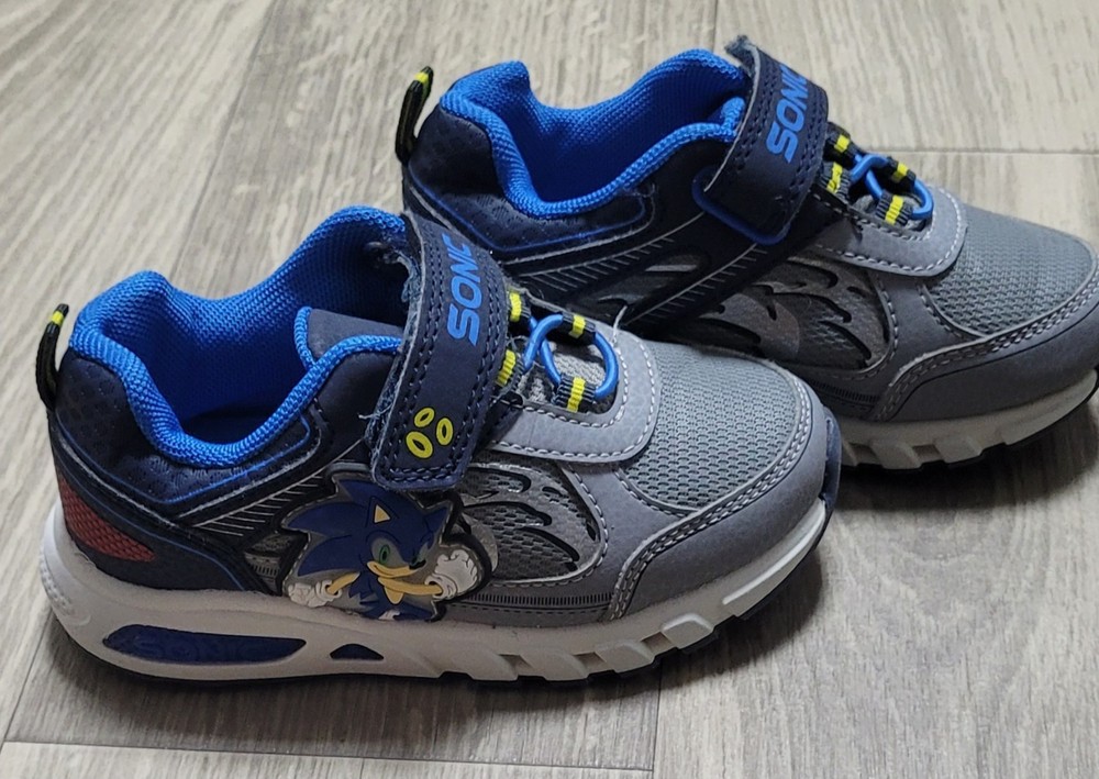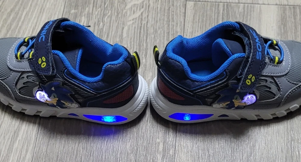 These Children's Sonic light up shoes in size 10 are perfect for active kids. With a lace-up closure and adjustable strap, they offer a comfortable fit for all-day wear. The sneakers feature a mid-top shoe shaft style with a solid blue color and Sonic the Hedgehog logo accents, making them both stylish and fun. Made of mesh material with a rubber outsole, these athletic shoes are ideal for walking, school, or running during the summer, fall, or spring seasons. Upgrade your child's footwear with these vibrant and practical light-up sneakers.