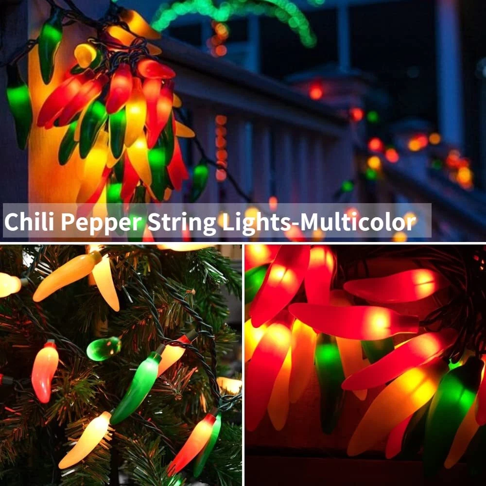 Chili Pepper Lights 13.6Ft Multicolor Chili Pepper String Lights 35 Chili Pep...