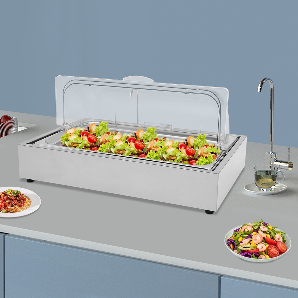 Ice Food Serving Display Tray Buffet Cold Serving Cooler Platter Cooling Food Description If you want to provide your family or guests with a meal that can be self-served and reduce the tedious steps of frequent cooling, then I suggest you buy our ice food serving display tray, which can keep your food fresh so that you can enjoy your food without worrying about it getting spoilage. Whether you are having dinner with your family or hosting a party with friends, it will give you a comfortable, and convenient dining experience. Key Features Sturdy and Durable: It is made of high-quality stainless steel and PC and adopts a polishing process, with high hardness, anti-corrosion, anti-rust, and high-temperature resistance, is healthy, and has a long service life. Suitable Capacity: With a total capacity of approximately 1.59 Gal, this product can hold enough food to serve more guests at a family/friend's gathering. Enjoy Freshness: The ice crystal substance on the ice box is a freezable substance with a cold storage function. When water is added, it turns into a non-toxic, odorless gel. It is both environmentally friendly and harmless to the human body. In addition, the ice box can be recycled by filling it with water and freezing it only once. Modern Appearance: The sleek, polished surface of this modern piece will create a beautiful and decorative effect while displaying your food nicely. Thoughtful Design: The clear cover with a handle design can be opened conveniently for easy access while making it easy to see what's inside as it has good transparency and visualization. Simple Installation: With a full range of accessories and a simple structure, you only need to operate it with your own hands and it will be ready for use immediately! Easy to Clean: The smooth surface, simple structure, and removable covers of the product make it easy to clean with a rag or water. Customer Service : We aim to provide quality products and services. If you have any problems, please feel free to contact us. We will reply and solve the problem for you as soon as possible. Details Anti-slip Feet: Anti-slip feet on the bottom can enhance the stability of the product when standing. Smooth Edges: The smooth and burr-free edges prevent your hands from being scratched and are convenient for you to clean. Application It is convenient for outdoor buffets, parties, and street vendors, and can also be used in indoor restaurants or markets to preserve seafood, marinated vegetables, cold dishes, dressings, desserts, sashimi, sushi, salads, fruits, vegetables, and other dishes. How to Use Fill in water and put it in the freezer. Put the ice box into the bottom. Put on the pans with the food(not included). Specification Material: PC, Stainless Steel Color: Silver Style: Modern Shape: Rectangle Process: Polishing Assembly Required: Yes Mounting Type: Freestanding Capacity: About 6L/1.59Gal Gross Weight: 4.5kg/ 9.92 lbs Net Weight: 3.5kg/ 7.72 lbs Product Height(Without Cover): 11.5cm/4.52in Product Size: 57.5*37*28cm/22.63*14.56*11.02in Package Size: 60*40*21 cm/23.62*15.75*8.27in Package Included 1* Ice Food Serving Display Tray 1* Ice Box 1* PC Cover Notes Please note that this product does not contain any food. Please note that this product cannot be heated with an induction hob. Some welding traces of the product are a normal phenomenon, please make sure you don't mind before ordering. Please allow the slight color difference caused by the shooting light and the 1-3 cm error due to manual measurement, and make sure you do not mind before ordering. Payment Delivery details Terms of sales About us Contact us Payment We accept ebay payment 。 Fees such as import duties, taxes are not included in the item price or shipping costs. These charges are the buyer's responsibility. Delivery details Shipping: 2-9 working days to: USA Terms of sales We maintain high standards of excellence and strive for hundred percent customer satisfaction. Feedback is very important to us. We hope that you contact us immediately before you give neutral or negative feedback, so that we can address your concerns. It is impossible to address issues if we do not know about them! About us Your satis faction is our ultimate goal. We work hard to earn your trust and future business. Our certified technicians have tested each item before shipping. The unit comes with 1 year limited warranty on all manufacturing defects. a) If you receive a defective item, you may return it or ask for a discount. Please contact us within 14 days after you receive the package. b) What you returned must be intact and in its original packaging as re? u. Customer is responsible for shipping costs of the returned item. c) We will cover the cost of shipping back t with the shipping rate indicated in the registration page. We will send you a new unit or refund the full payment you paid. Thank you. Contact us Business Hour Business Hour: Monday To Friday: 8:30 AM to 5:00 PM (Beijing China time) Due to time zones, our reply to your questions may not be immediately. But within above working time, we will reply your email within 24 hours. If it's non-workdays, please kindly be patient and wait till Monday. Please contact us with ebay message. Please feel free to contact us if you have any questions. Monday To Friday: 8:30 AM to 5:00 PM (Beijing China time) Due to time zones, our reply to your questions may not be immediately. But within above working time, we will reply your email within 24 hours. If it's non-workdays, please kindly be patient and wait till Monday. Please contact us with ebay message. Please feel free to contact us if you have any questions.