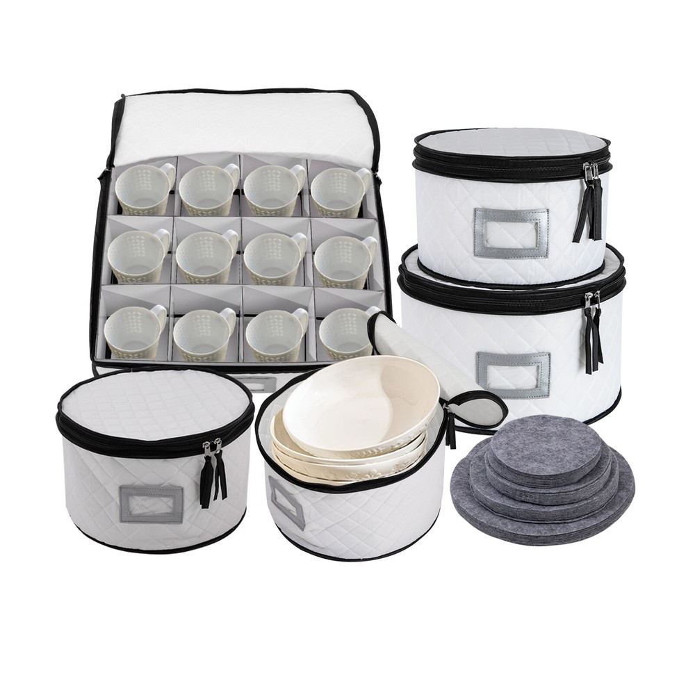 China Storage Containers with Lid , Dinnerware Storage Box for Dishes & Plates Description Are your dishes, cups, and saucers always misplaced, taking up space, or breaking by accident? You need to get yourself this dinnerware storage organizer set. It includes five organizers made of soft and elastic material and boasts a large capacity for storing and protecting your plates and cups from scratch and cracking, helping you manage your dishes effectively, and making your table and kitchen more tidy. Whether you are a housewife or a professional cooker, it is a good and indispensable helper for you. Key Features π₯ High-quality Material: It is mainly made of high-quality polyester, sponge, and paperboard with excellent wear resistance and durability, making our products the ideal protector and organizer for your plates. π₯ Kitchen Organizer: This set includes five different sizes of organizers for storing and organizing plates, cups, saucers, and other kitchenware, saving you kitchen space and meeting your daily categorized storage needs. π₯ Tableware Protector: With a soft sponge inside and polyester outside, it can protect your fragile plates, dishes, and cutlery from scratches or cracks, ensuring they remain clean, dust-free , and intact to a certain extent. π₯ Large Capacity: The four round organizers with different sizes can accommodate saucer plates, dessert plates, salad plates, dinner plates, etc., while the large rectangular one with 12 compartments can store your cups safely and orderly. Additionally, the removable partitions bring you more convenience for storing the large size of mugs. β¨ Easy to Store & Carry: They are stackable and lightweight, so you can easily move them or store them in your cabinets and pantry closet. β¨ Double-zipper Design: It not only makes it easier to open and close but also provides a good seal to keep out dust, moisture, and dirt. β¨ Ideal Gift: The convenient and practical design makes it a great housewarming, bridal, holiday, Christmas, Halloween, and New Year gift. β Customer Service: We aim to provide quality products and services. If you have any problems, please feel free to contact us. We will reply and solve the problem for you as soon as possible. Details Label Holder: You can insert your own label into the label holder of each organizer to categorize your items, helping quickly identify contents inside and allowing for easier access. Plate Mats: Soft felt fabric plate mats can separate the plates when stored in the organizer, preventing them from bumping into each other and causing accidental breakage or loss. Application It can be used to organize different types and sizes of plates in the kitchen, and easily store dinner plates, salad plates, and bowls as well as crystal glasses, goblets, champagne, wine glasses, mugs, tumblers, and coffee cups. Notes Please check the size carefully before ordering. Product capacity is for reference only and will also depend on the height of the plate. Please allow the slight color difference caused by the shooting light and 1-3cm error due to manual measurement, and make sure you do not mind before you order. Specifications Color: Creamy White Style: Modern Shape: Round, Rectangular Material: Polyester, Sponge, Felt Fabric, Paperboard Assembly Required: No Closure Type: Zipper Number of Items: 5 Number of Compartments of the Large Organizer: 5 Four Round Organizer Size(D*H): 30*18cm/11.81*7.08inch,25*15cm/9.84*5.9inch, 20*15cm/7.87*5.9inch,, 17*15cm/6.69*5.9inch Large Rectangular Organizer(L*H): 39*11cm/15.35*4.33inch Packaging Size: 33.5*13*38cm/13.19*5.12*14.96inch Gross Weight: 2kg/4.41lbs Package Included 5* Dinnerware Storage Organizers 4Set* Plate Mats Payment Delivery details Terms of sales About us Contact us Payment We accept ebay payment γ Fees such as import duties, taxes are not included in the item price or shipping costs. These charges are the buyer's responsibility. Delivery details Shipping: 2-9 working days to: USA Terms of sales We maintain high standards of excellence and strive for hundred percent customer satisfaction. Feedback is very important to us. We hope that you contact us immediately before you give neutral or negative feedback, so that we can address your concerns. It is impossible to address issues if we do not know about them! About us Your satis faction is our ultimate goal. We work hard to earn your trust and future business. Our certified technicians have tested each item before shipping. The unit comes with 1 year limited warranty on all manufacturing defects. a) If you receive a defective item, you may return it or ask for a discount. Please contact us within 14 days after you receive the package. b) What you returned must be intact and in its original packaging as re? u. Customer is responsible for shipping costs of the returned item. c) We will cover the cost of shipping back t with the shipping rate indicated in the registration page. We will send you a new unit or refund the full payment you paid. Thank you. Contact us Business Hour Business Hour: Monday To Friday: 8:30 AM to 5:00 PM (Beijing China time) Due to time zones, our reply to your questions may not be immediately. But within above working time, we will reply your email within 24 hours. If it's non-workdays, please kindly be patient and wait till Monday. Please contact us with ebay message. Please feel free to contact us if you have any questions. Monday To Friday: 8:30 AM to 5:00 PM (Beijing China time) Due to time zones, our reply to your questions may not be immediately. But within above working time, we will reply your email within 24 hours. If it's non-workdays, please kindly be patient and wait till Monday. Please contact us with ebay message. Please feel free to contact us if you have any questions.