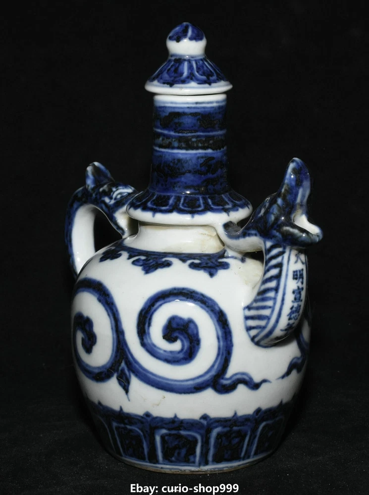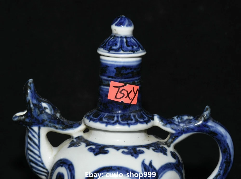 **** Welcome to our antique & Collectable Shop : Porcelain**** Description: Here is China Dynasty Blue White Porcelain Fengshui Dragon Beast Animal Kettle Wine Pot .It is in good condition, and was created by skilled craftsmen in traditional style with fine handcrafts.This is a great piece of valuable collection, a valuable personal alter or a very good present. the handwork is very fine with incredible detailling. Don't miss out this chance to get it.Wish you good luck! Material : Blue White Porcelain Size : Heigh t 6.6 Long 6.2 breadth 3.5 (inch) Condition Perfect Condition. Perfect, with no scratc hes, flaws or repairs. Weight: 1.0 KG----included the weight of packing materials Shipping cost to all over the world countries in Free Honored Customers: We are selling the collectibles products and crafts in Beijing ,China since 1993 and collected them all over the world all the time . In our shop the bronze sculpture, animal, vase, urn, flowerpot,Incense Burner.Table chair sets. Militaria goods. buddha statues, Bodhisattva Statues, Buddhist Ritual Items etc is our speciality .Many of the items we sell come from our own personal collection and have been in our family for a very long time .My great-grandfather was the first in this family to start collecting art & antiques when he still lived in San Xi and Tibet around 1922 ,some of the paintings he once collected can now be seen in museums around the globe.We won't make money from t he shipping cost, if you dislike the item when you receive it,we can refund all of your money to you within thirty days. Please confidence for bidding . We recommend the combine shipping and offer you an big price discount if you order more items together ! 2023.06.12 四 号