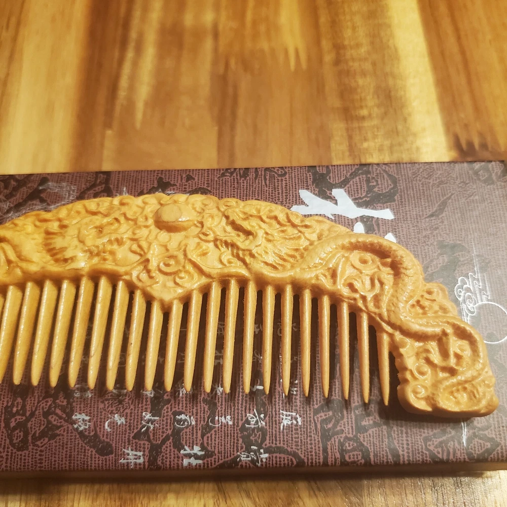 Add a touch of elegance to your hair routine with this beautiful China Natural Thuja Wood Comb! This double-sided carved Dragon Image comb is perfect for everyday use and will suit both men and women. Crafted from the finest quality Wood, this comb is made to last and will stay in great condition for years to come. The intricate Dragon design is a true work of art and will make a great addition to any collection. Made in China, this comb is a must-have for anyone who appreciates quality and craftsmanship. Box 3