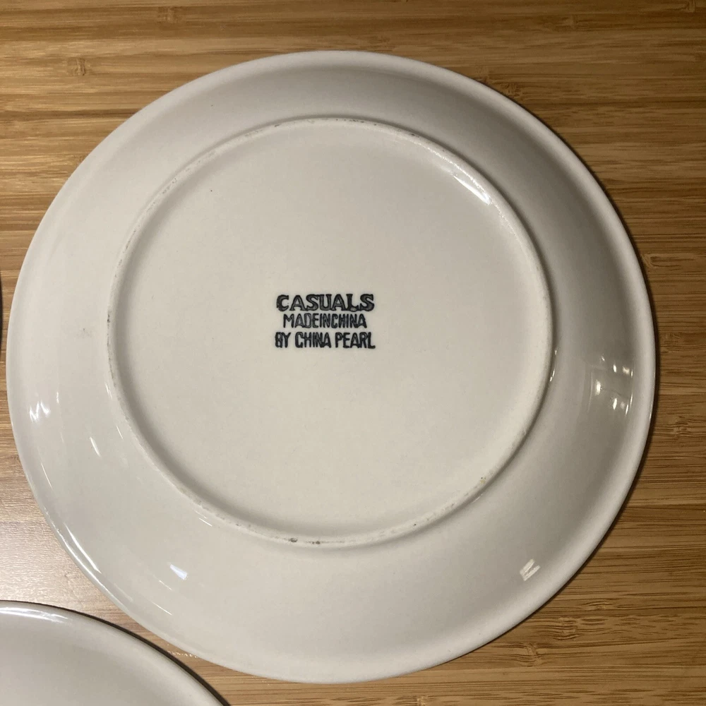 Set Includes: Salad Plate Vintage: Yes Occasion: Casual Material: Stoneware Product Line: Apple Blossom Color: Multicolor Brand: Casuals by China Pearl Country/Region of Manufacture: China Pattern: Vintage Type: Luncheon Plate