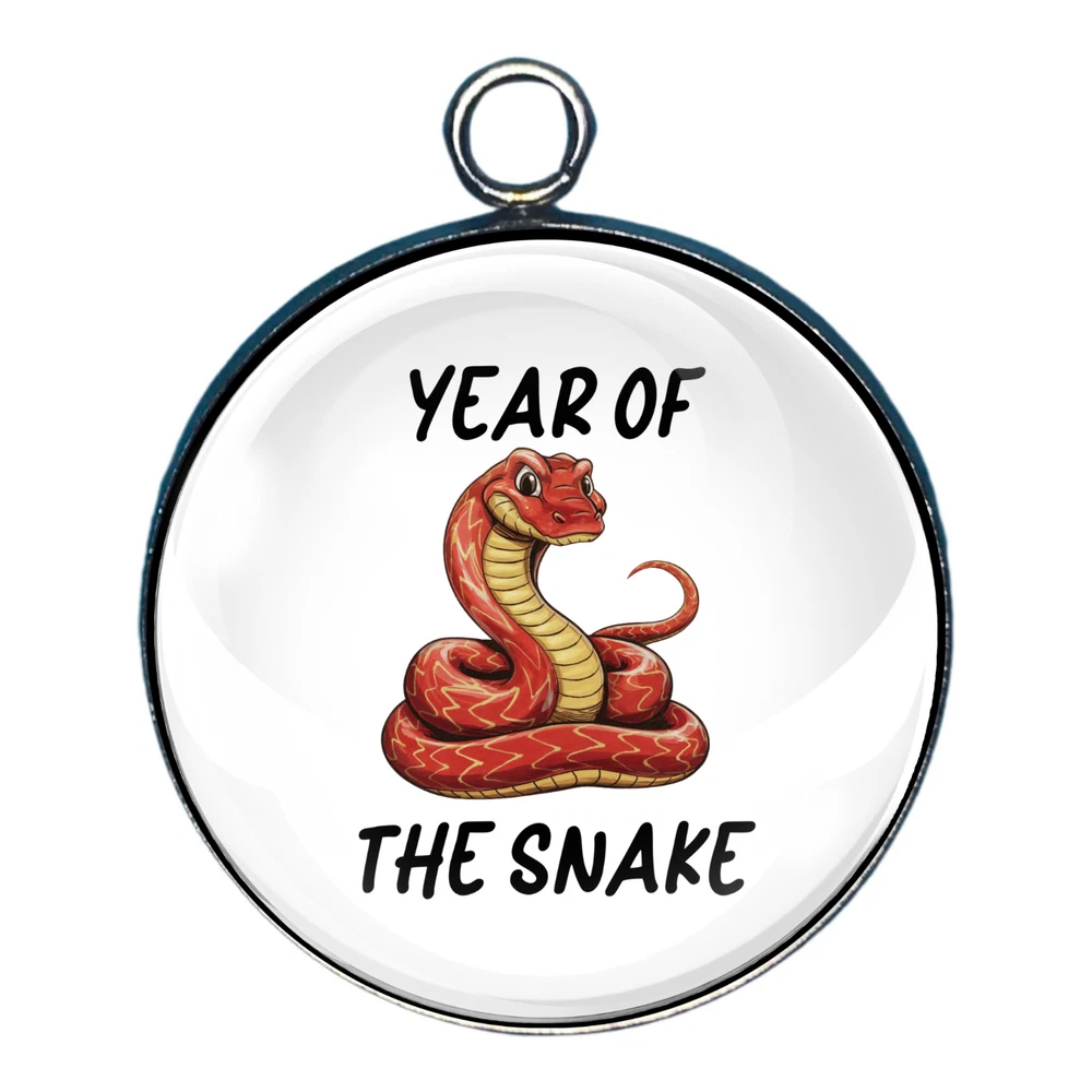 Ring in the Chinese New Year 2025 with these Year of the Snake charms. These are glass cabochon charms set into a stainless steel, Silver tone or Gold tone base. We make these charms in three different sizes. Small (14mm) -good size for Earrings Medium (18mm) - good size for Bracelets Large ( 25mm) - good size for Necklaces These Charms are Unisex but recommended for Adults (13+) " CLICK ON THE STYLE# TO SEE THE CORRESPONDING IMAGE" These wonderful charms/pendants are great for making Necklaces, Bracelets, Earrings, Bookmarks, Zipper pulls, Hat Pins, Lapel Pins, Magnets, Key Tags, Purse Danglers, Crafts and so much more... The possibilities are endless with these charms so let your creativity run wild! The glass Cabochon charms are NOT waterproof, so you must take them off for showering/bathing/swimming, or other activities where they may get wet.