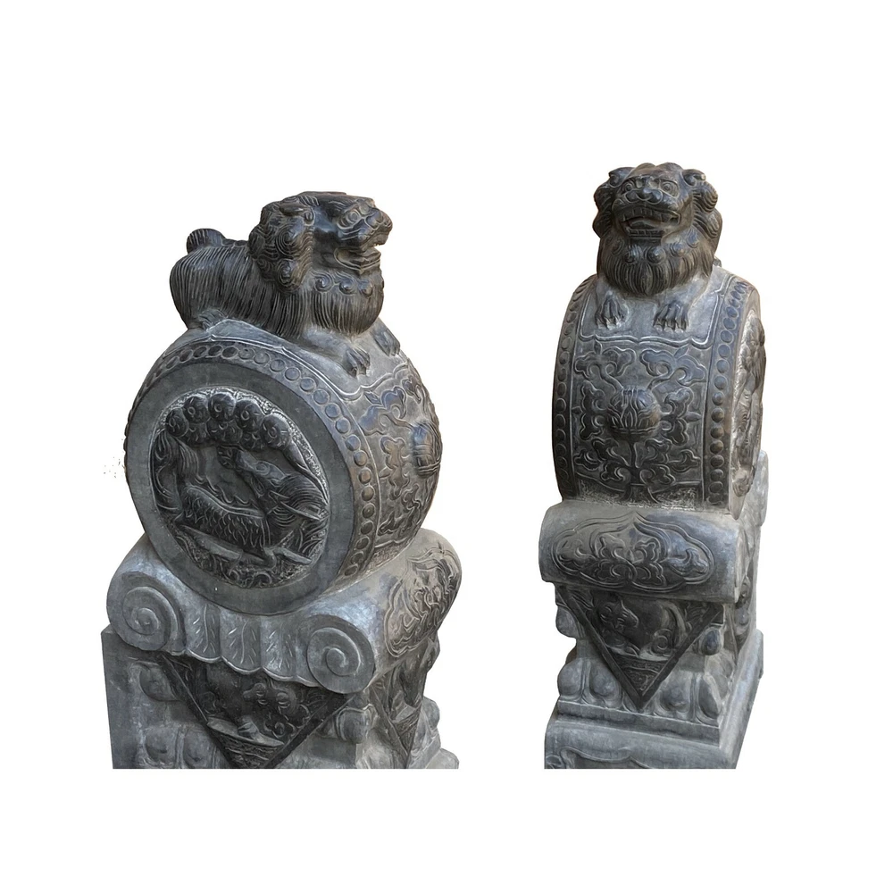 Chinese Pair Black Gray Stone Fengshui Foo Dogs Drum Statues cs7219 DESCRIPTION This is a pair of traditional Chinese door block statues at the front door. They have a Fengshui purpose as well as a door base of the wooden doors. It is a charm meaningful Fengshui statue at the home or as a decorative piece in the garden. This style of statue was the origin in Beijing. The base is carved with a petal pattern. The round drum is supported with a ribbon accent and a carved floral pattern. The surface is finished in distressed dirt marks style. Dimensions: w9.5" x d15" x h32" each Origin: China Material: Stone Condition: hand-carved, natural stone marks, edge chips, dirt. Shipping Payment Return Contact Us Shipping Payment Return Contact Us US domestic continental buyer of 48 state pays listed shipping charge for curbside delivery. Customer from Hawaii, Alaska, US Island, Florida Key West and Canada pays extra Shipping cost. Insurance and handling charge are included in the shipping cost. Curbside - trucker drops off the pallet roadside of your location. We normally ship within 5 to 7 business days after payment, usually sooner. When your shipment is delivered, carefully inspect the outside of the packaging before the delivery personnel leave. It is important to clearly indicate if there is any visible damage to the packaging or items on the delivery paperwork. Carriers usually do not honor concealed damage claims so it is crucial to clearly indicate any visible damage to the packaging or items on the delivery paperwork. In-store pickup is highly welcomed if you are in San Francisco Bay Area (No charged) White Glove In-house Delivery service can be arranged - estimate an additional $500 -$700 based on the furniture size and volume. The Shipping company needs to accumulate shipments to move from coast to coast, so please understand the transit time is about 6 - 8 weeks. For customer who are looking to buy multiple items, we can do combine shipping - several items on the same pallet or small item inside the largest items as long as it can fit in. Global shipping is available, please contact us. We accept Paypal and all major credit card (Visa, Master, American Express and Discover) For internatinal customer, the easiest way is to pay by Paypal, we will only ship to Paypal comfimed address. - In the event that you would like to return your purchase, we allow returns that are processed within the defined return date (the return date is to be found in the return policy/shipping and handling section) - Please contact us for a return authorization and the return shipping address - We advise you to use a reputable carrier service when returning your goods. Please pack all returns appropriately. - Buyer may be responsible for round trip shipping. Damage Claim: For Curbside trucking shipment, please check the product is in good condition before you sign the release paper and accept the shipment. Report to the driver and write a note on the shipping document if there is any damage. Take photos for the record. We are not responsible for any conceded damage reported afterward. Customer is responsible to report any damage as soon as possible after receiving the item, All packing material should be kept for damage claim. We will not responsible for any damage cost if damage claim cannot be filed to the insurance company due to customer mistake " did not keep the original packaging material and box" If you have any question, please contact us via ebay. We usually respond within 10 min during office hour. Monday ~ Sunday (7days 10.00 am till 6.00 pm). See our other items This is a pair of traditional Chinese door block statues at the front door. They have a Fengshui purpose as well as a door base of the wooden doors. It is a charm meaningful Fengshui statue at the home or as a decorative piece in the garden. This style of statue was the origin in Beijing. The base is carved with a petal pattern. The round drum is supported with a ribbon accent and a carved floral pattern. The surface is finished in distressed dirt marks style. Dimensions: w9.5" x d15" x h32" each Origin: China Material: white marble Stone Condition: hand-carved, natural stone marks, edge chips, dirt. Chinese Pair Black Gray Stone Fengshui Foo Dogs Drum Statues cs7219 DESCRIPTION This is a pair of traditional Chinese door block statues at the front door. They have a Fengshui purpose as well as a door base of the wooden doors. It is a charm meaningful Fengshui statue at the home or as a decorative piece in the garden. This style of statue was the origin in Beijing. The base is carved with a petal pattern. The round drum is supported with a ribbon accent and a carved floral pattern. The surface is finished in distressed dirt marks style. Dimensions: w9.5" x d15" x h32" each Origin: China Material: white marble Stone Condition: hand-carved, natural stone marks, edge chips, dirt. Shipping US domestic continental buyer of 48 state pays listed shipping charge for curbside delivery. Customer from Hawaii, Alaska, US Island, Florida Key West and Canada pays extra Shipping cost. Insurance and handling charge are included in the shipping cost. Curbside - trucker drops off the pallet roadside of your location. We normally ship within 5 to 7 business days after payment, usually sooner. When your shipment is delivered, carefully inspect the outside of the packaging before the delivery personnel leave. It is important to clearly indicate if there is any visible damage to the packaging or items on the delivery paperwork. Carriers usually do not honor concealed damage claims so it is crucial to clearly indicate any visible damage to the packaging or items on the delivery paperwork. In-store pickup is highly welcomed if you are in San Francisco Bay Area (No charged) White Glove In-house Delivery service can be arranged - estimate an additional $500 -$700 based on the furniture size and volume. The Shipping company needs to accumulate shipments to move from coast