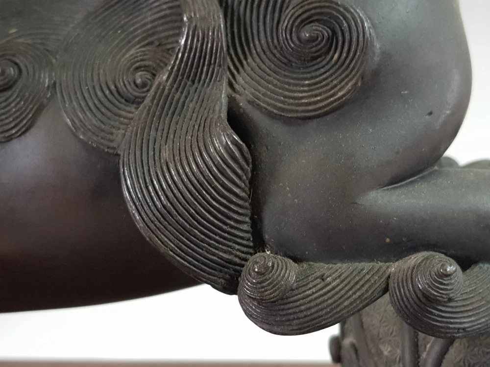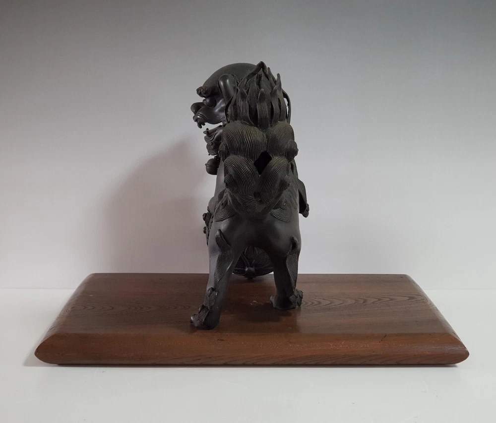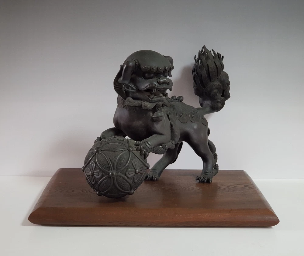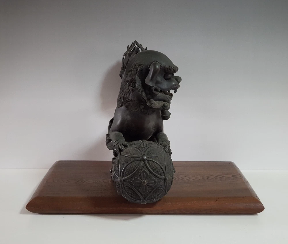 Chinese Qing Dynasty Buddhist Lion-shaped Bronze Statue D:41cm W:8103g 古銅製 獅子 置物 木座台付き 時代唐物 D:41cm W:8103g Please look at the photos carefully and if you have any questions, contact me before bidding. As our collection's descriptions based on my own opinion, we cannot return it for reasons of different age. Thank you very much!