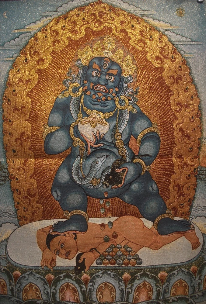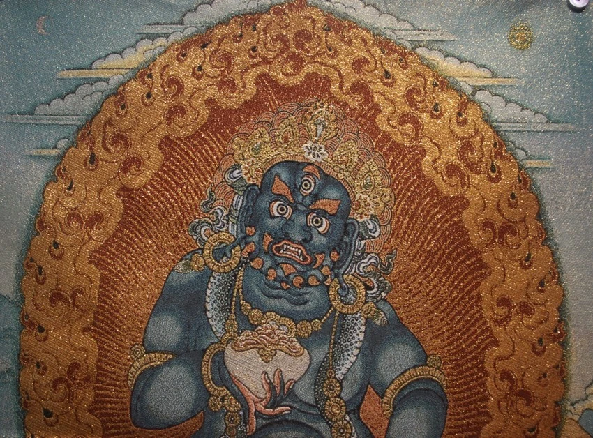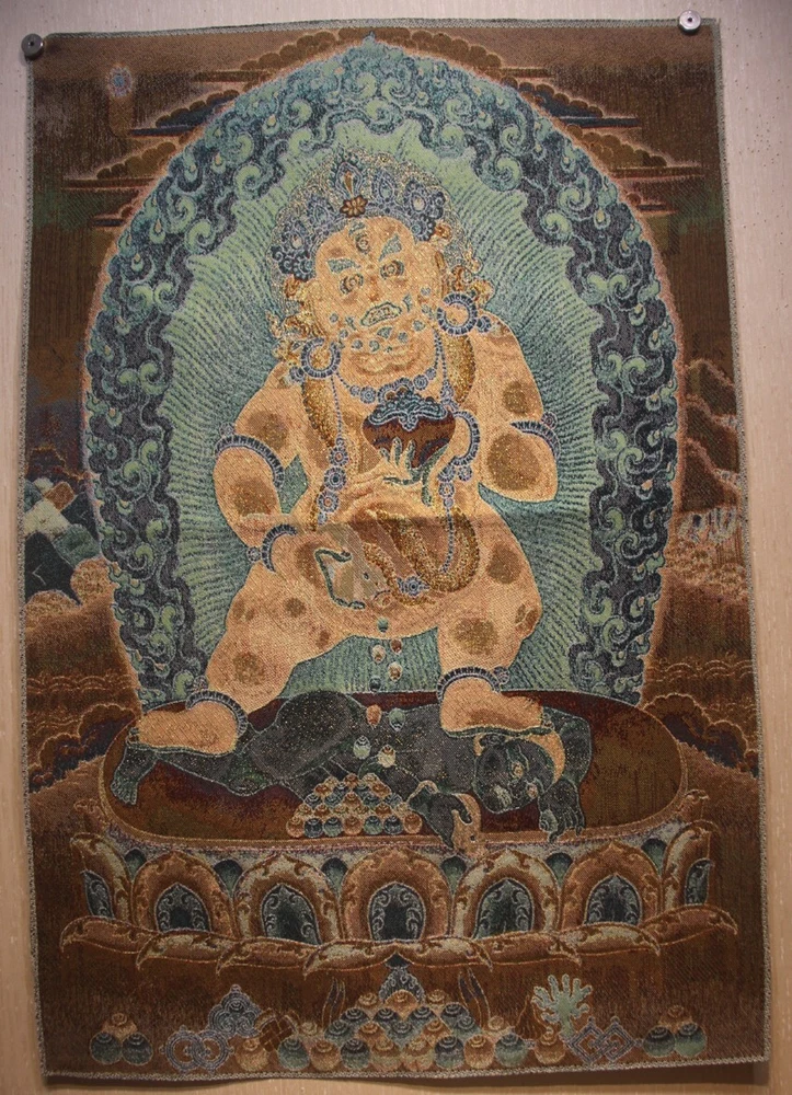 - Nice Chinese Tibet Buddhism embroidery Brocade Tapis Thangka Tangka "Black Kubera" - Size : 34 x 22 inches (1 inch = 2.54 cm) Material : Silk This guardian "black kubera" is tibetan buddhism nyingma tradition or school, I have the institution "ENERGETICLY to delete "negative parts of the father relationship to son! Practice this path ,may it will be a little bit "truth" It's rare thangka Strong Package - Free Express Delivering Returns Policy : 30-days Return Yours Satisfaction is My Best Success I am an honest Himalayan Arts dealer - Focusing on this for almost thirty years I'm glad to share my collection with friends from all over the world Please feel free to let me know if there are any question Tashi Delek