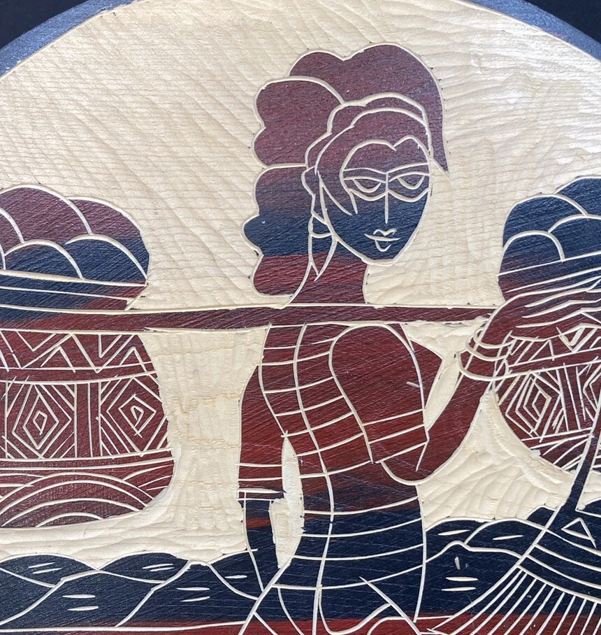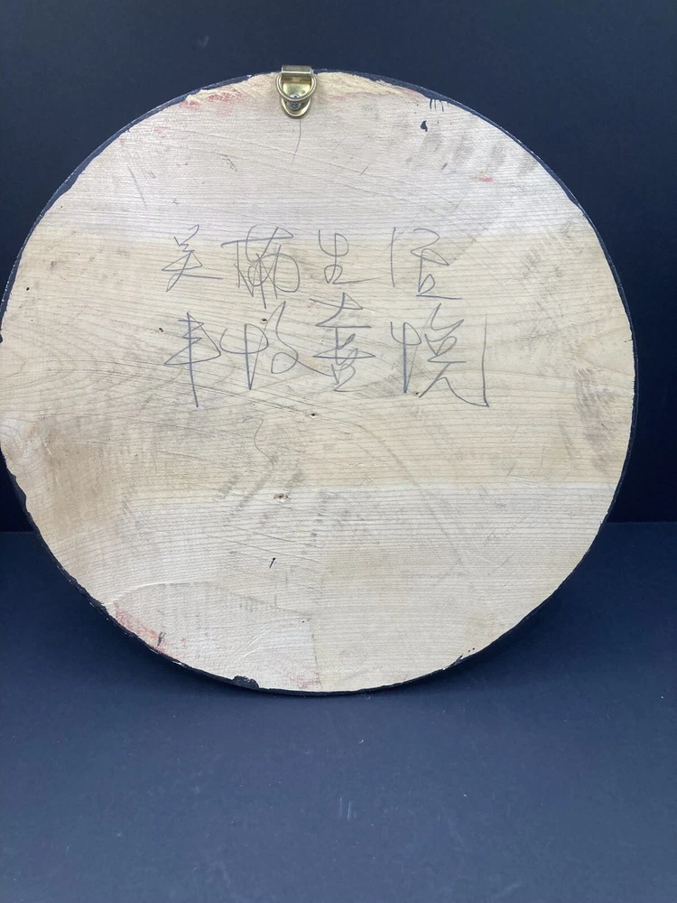 Chinese Tribal Art Wooden Wall Plaque Hand Carved And Painted 9.5” Diam.. Excellent condition. Signed. . See photos for more detail.