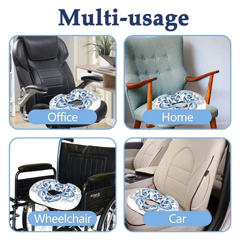 Chinoiserie Flowers Donut Pillow for Hemorrhoids Seat Cushion for Tailbone Pain Relief - Chinoiserie Decor Home Office Chair Cushion for Long Sitting Work - Memory Foam Car Seat Cushions for Driving Butt Pain Pressure Relief Chinoiserie Flowers Seat Cushion for Tailbone Pain Relief: When you have a work long sitting, sedentary discomfort is a real issue, long sitting can lead to a variety of health problems, including tailbone pain, driving butt pain, lower back pain, tailbone pressure. Our Chinoiserie Flowers office chair cushion design distributes weight evenly, provides back support for chair, provides tailbone pressure relief and pain relief. Chinoiserie Flowers Hemorrhoid Pillow for Pressure Relief: For person suffering from hemorrhoids, the pain and discomfort can make sitting for extended periods unbearable. Our Chinoiserie Flowers donut pillow for hemorrhoids provides the necessary support and comfort to relieve the pressure on sensitive areas, allowing you to sit without aggravating your hemorrhoids. Ergonomic Design: The Chinoiserie Flowers donut office chair seat cushion shape with ergonomic "U" shaped incisions, use to reduce hip pressure, effectively reduce tailbone pain, thereby reducing hemorrhoid pain, relieve the discomfort caused by long sitting. Tailbone cushions for pressure relief, donut pillow postpartum pregnancy, car seat cushions for driving butt pain, Chinoiserie Flowers donut pillow for tailbone pain. High Quality Seat Cushion: The surface layer of Chinoiserie Flowers donut pillow is made of comfortable and breathable fabric, and the core is high-quality memory foam, which can make you more comfortable and will maintain shape even after many uses, making it a high quality office chair cushion product. Thoughtful Gifts for Birthday: Our Chinoiserie Flowers donut pillow chair cushion is great gifts idea, if you give it as a gift to your family, friends, boss, coworkers, customers and colleagues, they will love it. Chinoiserie Flowers Donut seat cushion is perfect for people with special needs after surgery, pregnant women, elderly, office workers. Donut cushion is perfect for birthday gifts for women, Christmas gifts for mom.