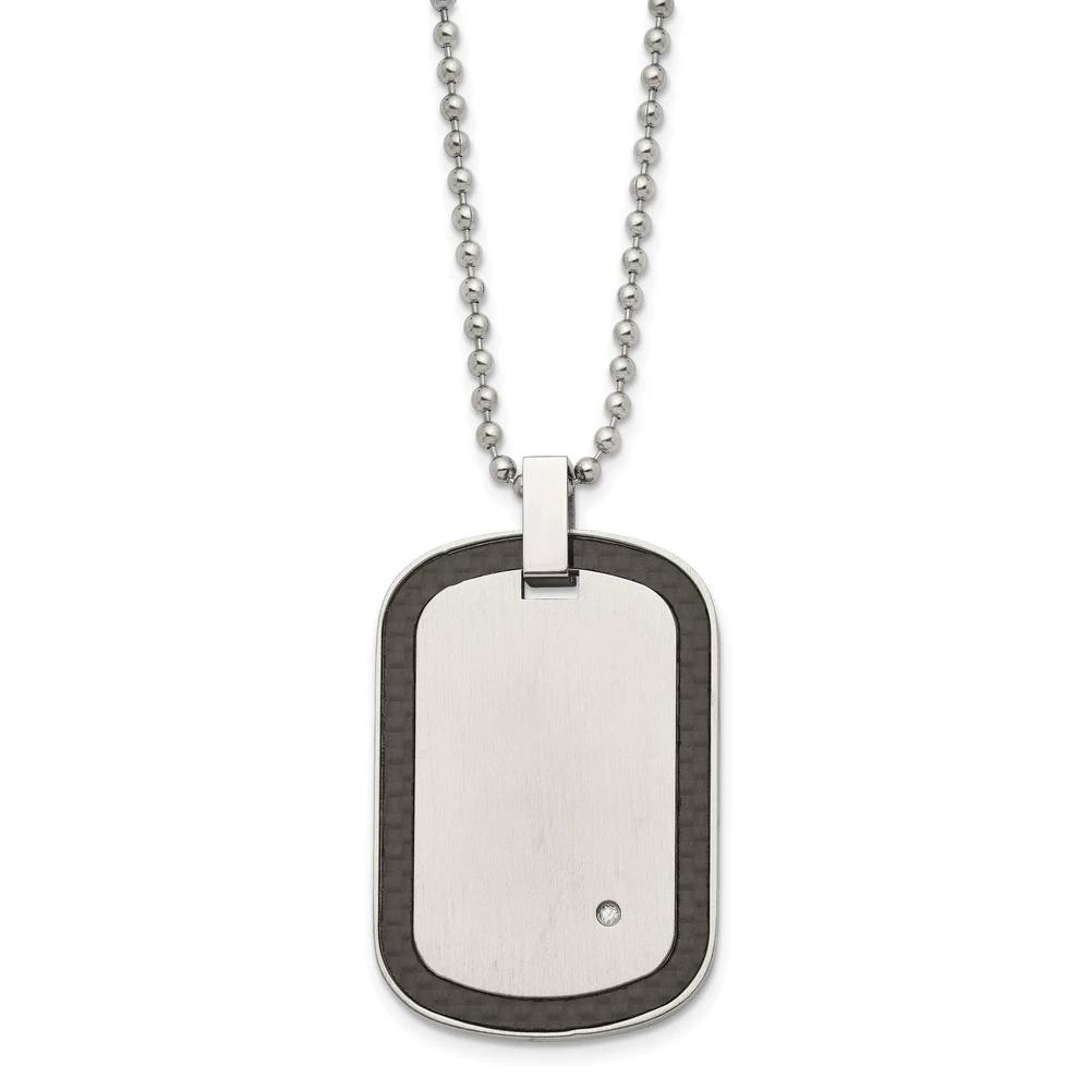 Chisel Stnls Steel Black Carbon Fiber Inlay Edges Diamond Dog Tag Ball Chain 24"