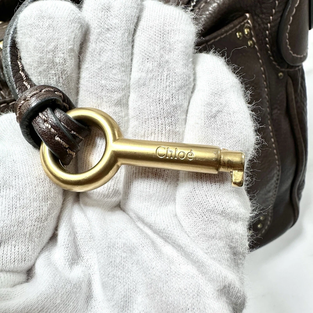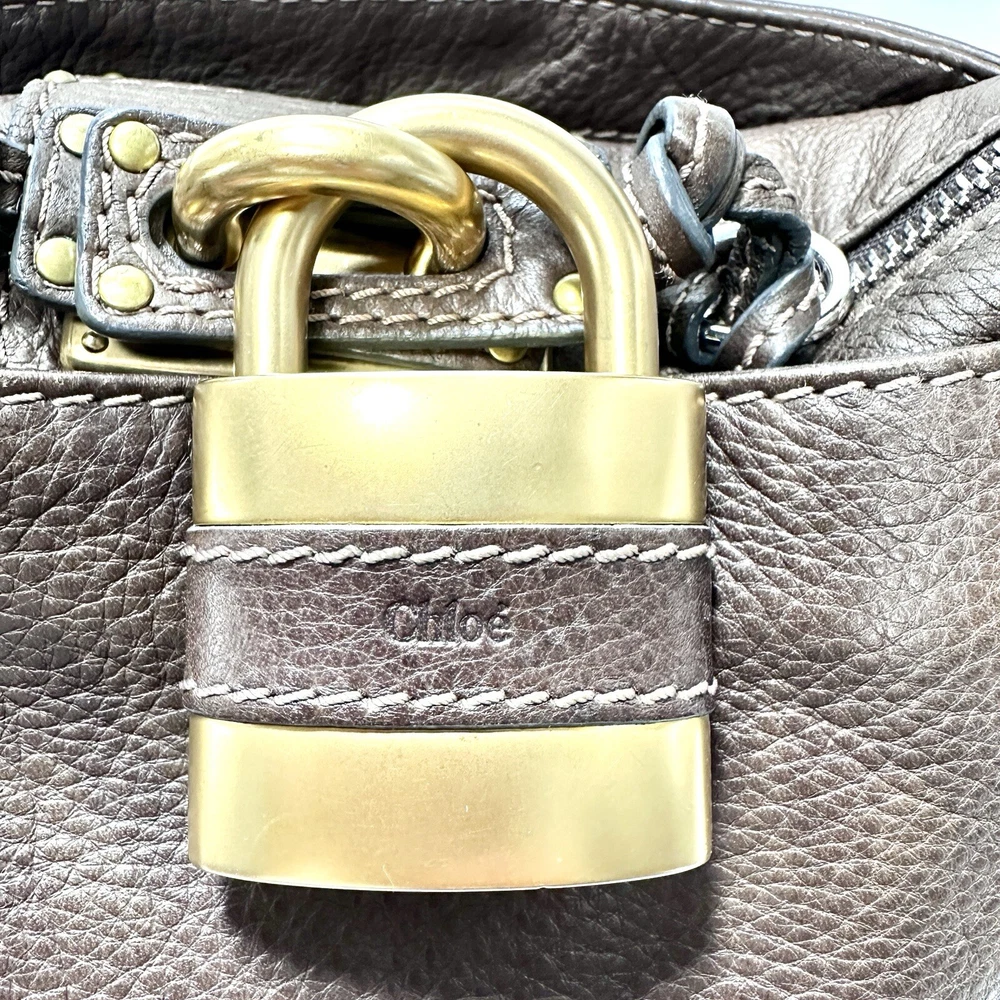 Chloe Paddington Handbag Brown Leather Padlock Authentic