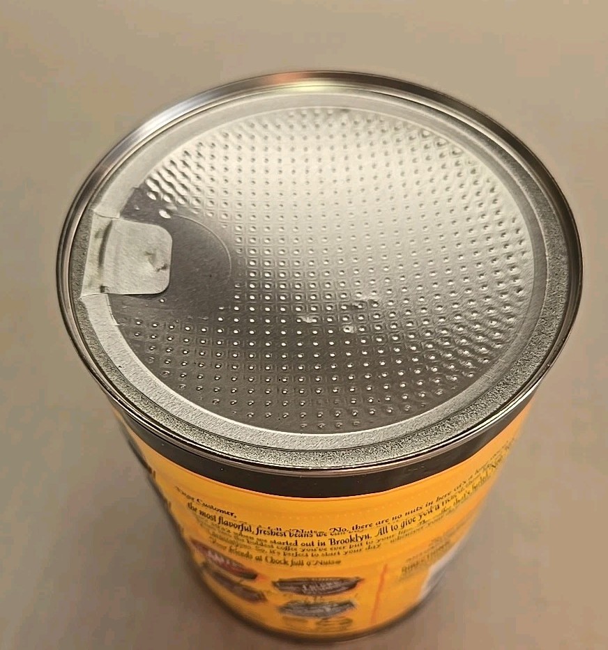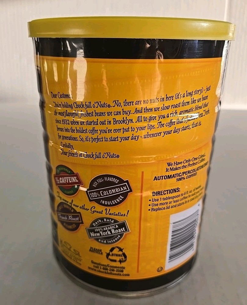 The Chock Full O' Nuts Coffee Tin is a vintage collectible featuring the iconic brand's logo. Made in the United States, this 11.3oz tin is a rare find as it has never been opened, making it a valuable addition to any coffee or tea advertising memorabilia collection. Perfect for collectors interested in the theme of coffee and tea, this original piece captures a piece of Americana nostalgia.