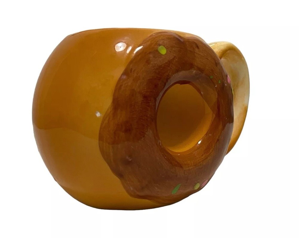 Chocolate Doughnut Novelty Mug W/ Sprinkles Donut Shaped Coffee & Tea Cup. Shipped with USPS Ground Advantage. Item is used, preowned. Item has minimal wear and distressing. Solid and stylish design.