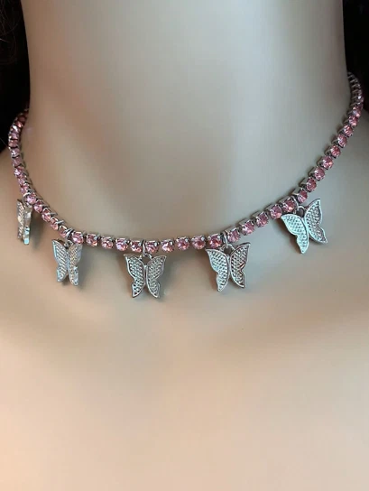 Shiny Many Lovely butterfly Full Around Crystal Chokers Necklace, EVGG1070 ✅ Necklace Length: up to 12 Inch stone and can be extended up to 22 Inch ✅ Metal: 925 Sterling Silver Plated over High Quality Brass ✅ Stone: Simulated Diamond ✅ High Quality Material ✅ Hand Crafted with love and care ✅ Perfect for gift, holiday, Christmas, birthday, vacation, Mother's day, Valentine's day, wedding, engagement , bridal, promise, anniversary, party ✨ Please feel free to message me if you have any questions. ✨ Thank you..!!