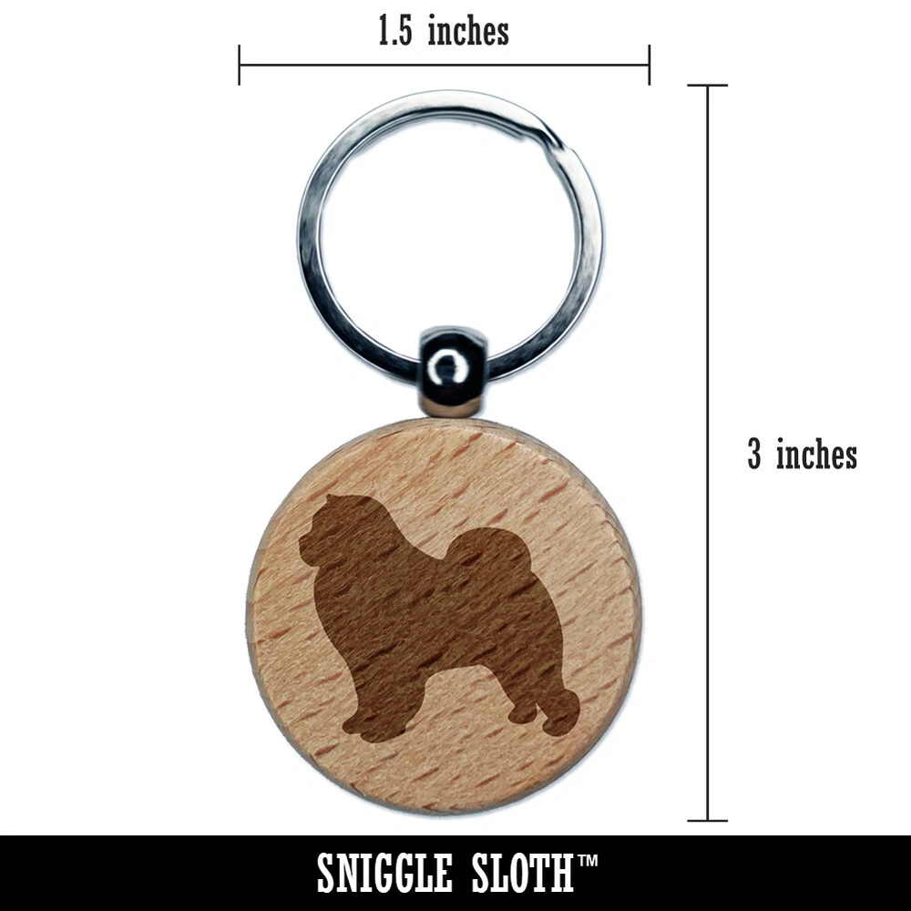Chow Chow Dog Solid Engraved Wood Round Keychain Tag Charm