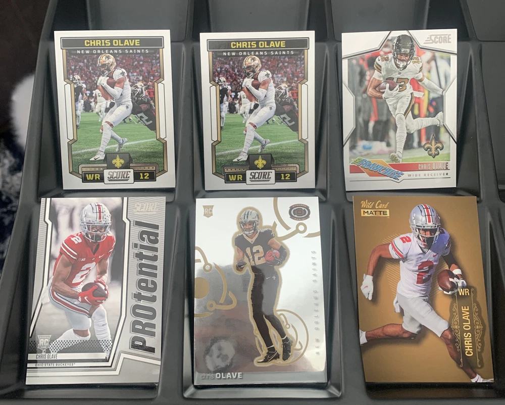 This 6 Card Lot of Chris Olave is perfect for any fan or collector looking to add to their collection. These cards represent some of Olave's greatest moments in his football career. The cards were produced by Panini and Wild Card and feature Olave as a player for the New Orleans Saints. The cards come from the Sports Trading Card category and are part of a Trading Card Lot. They are a must-have for anyone who loves football and especially for fans of Chris Olave. Don't miss out on this great opportunity to add to your collection. Free shipping Item 179