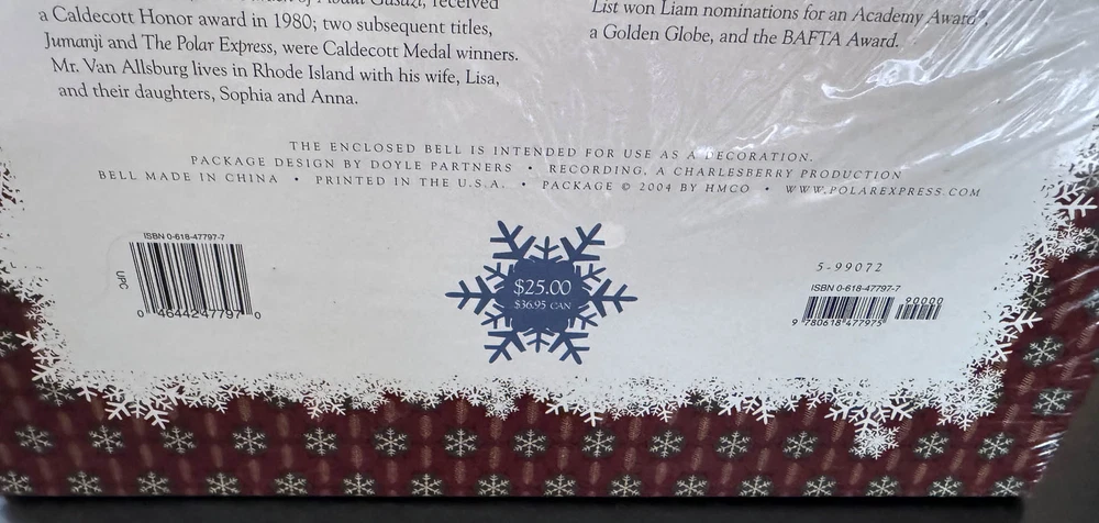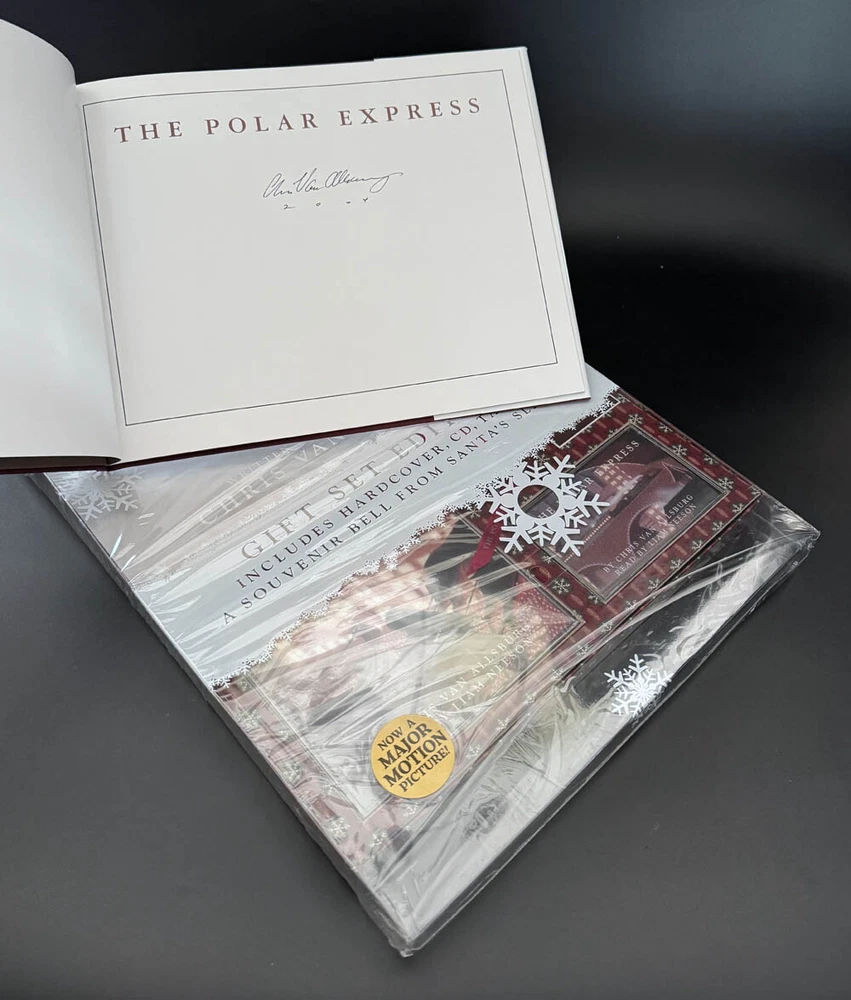 Mr. Chris Van Allsburg signed for me IN PERSON his MUST HAVE BOOK 'The Polar Express.' A VERY DESIRED SIGNED 2004 GIFT SET EDITION by Mr. Van Allsburg, here are some EXCITING details about this gift book set: ** FIRST EDITION LATER PRINTING ** ** SIGNED IN BOLD BLACK ON TITLE PAGE ** ** VERY RARE PERSONAL APPEARANCE ** ** HARDCOVER EDITION ** ** NON SMOKING ENVIRONMENT ** ** PUBLISHERS PRICE STILL INTACT ** ** AUDION BOOK ON CD AND TAPE ** ** SOUVENIR BELL FROM SANTA'S SLEIGH INCLUDED ** ** VERY DESIRED SIGNATURE IN BOOKS ** ** NO REMAINDER MARK ** ** NOT SIGNED TO ANYONE ** ** BRAND NEW/UNREAD CONDITION ** ** GREAT COLLECTIBLE ** ** MUST HAVE FOR ALL FANS OF THE POLAR EXPRESS AND CHRIS VAN ALLSBURG ** We will gladly issue A SIGNED CERTIFICATE OF AUTHENTICITY with your signed book. Upon receipt of your payment, we will mail you out your item via BOXED USPS MAIL POSTAGE WITH DELIVERY CONFIRMATION. We suggest insurance for packages but will leave that option to the buyer.