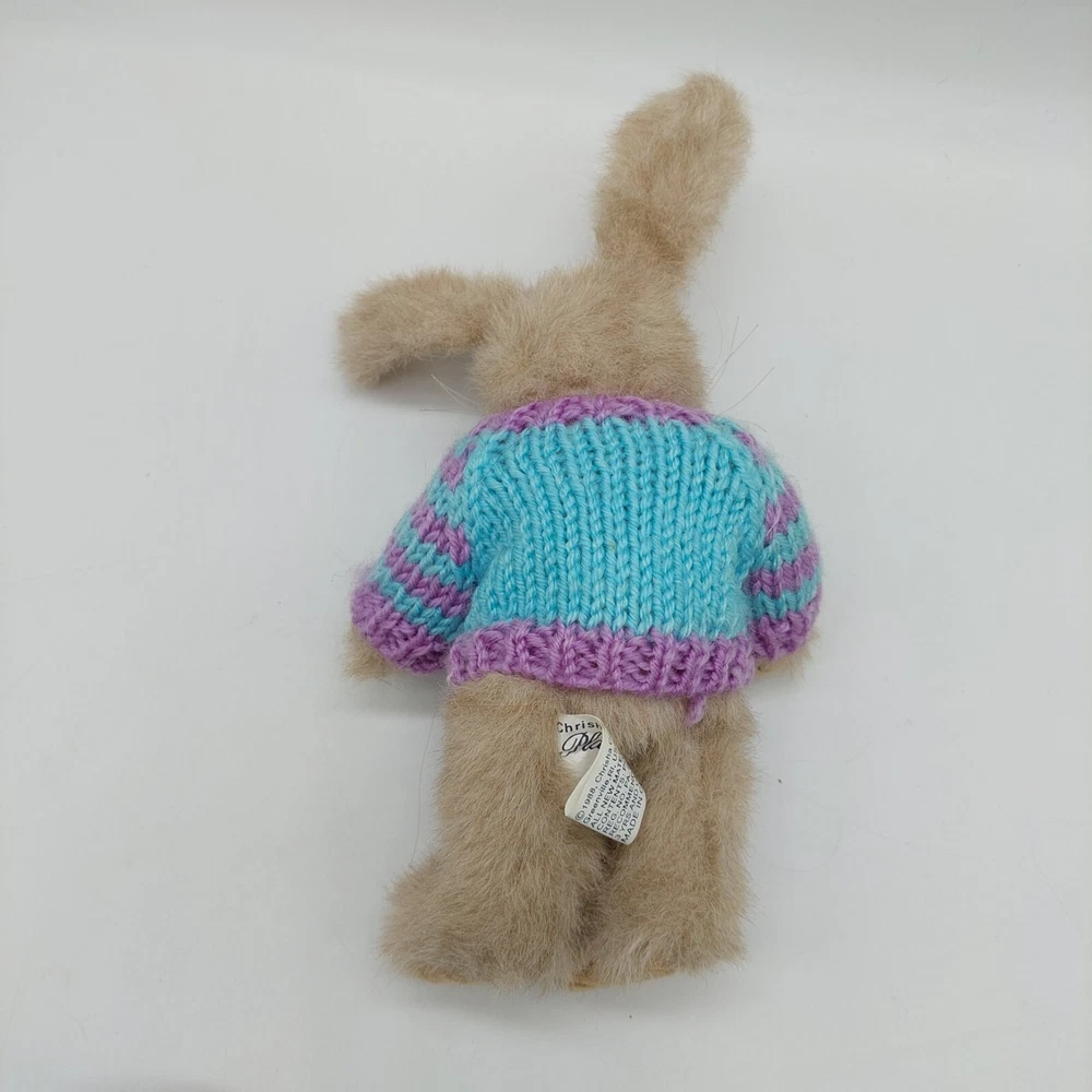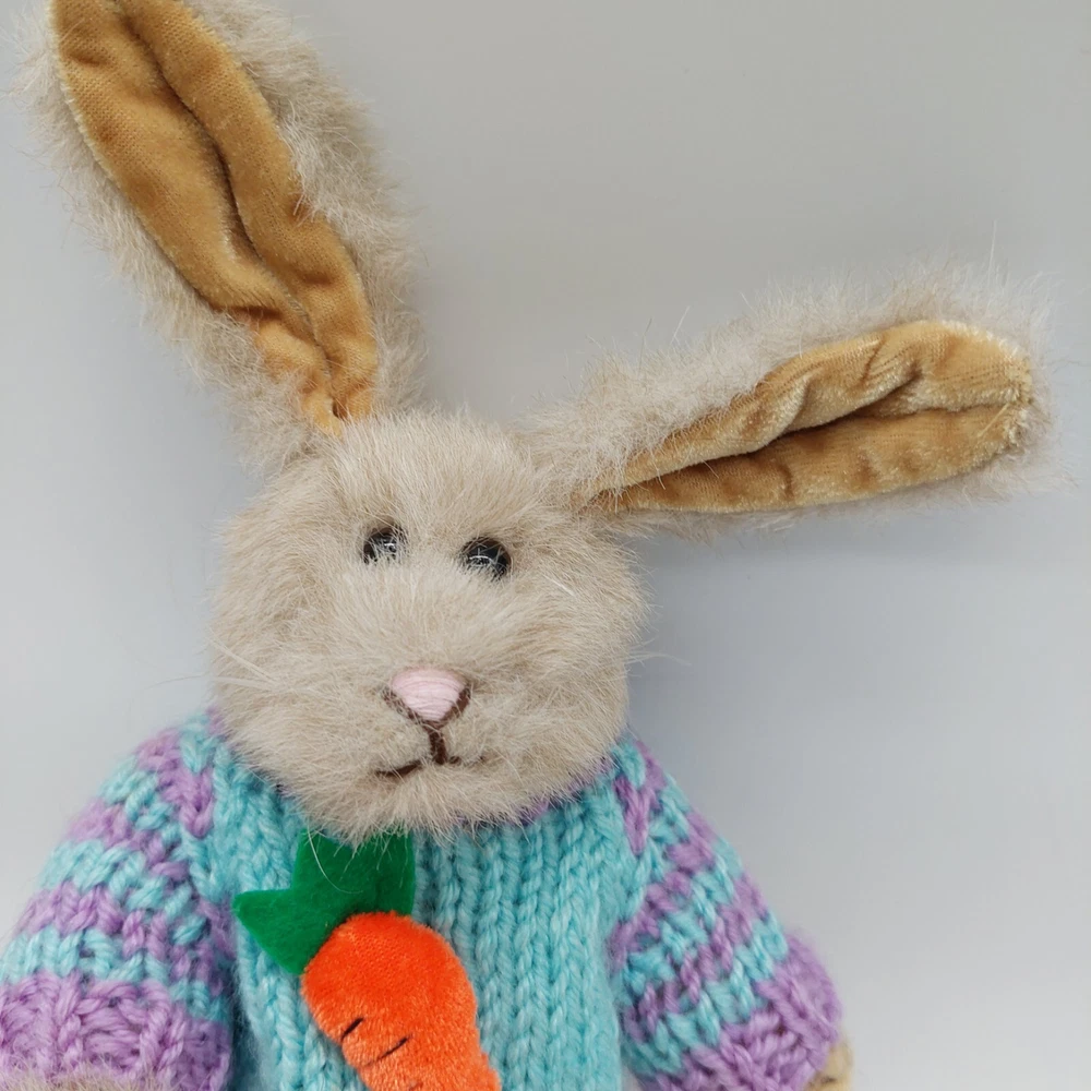 Chrisha Playful Plush Brown Bunny Rabbit Knitted Carrot Sweater 1988 Stuffed