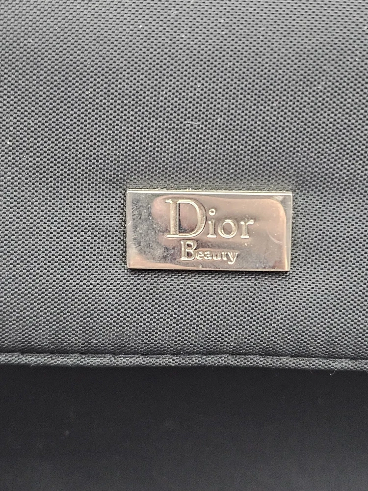 Christian Dior Black Nylon Beauty Makeup Pouch Cosmetic Case With Handle Travel. There are some blemishes from use. See photos