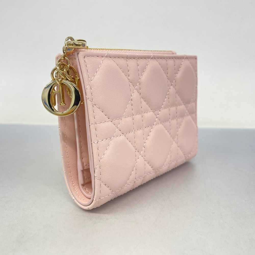 Christian Dior Canage Leather Wallet Pink Gold Hardware 5Gc2920-H Pre-Owned Women's Luxury
