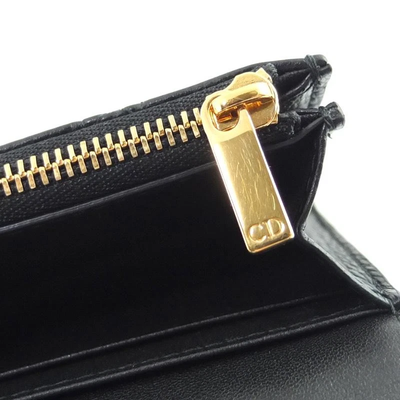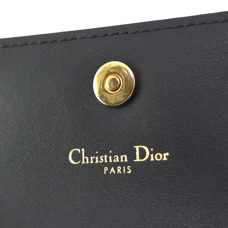 Christian Dior Caro Glycine CD Logo Coin Case Wallet Purse Leather Black Auth