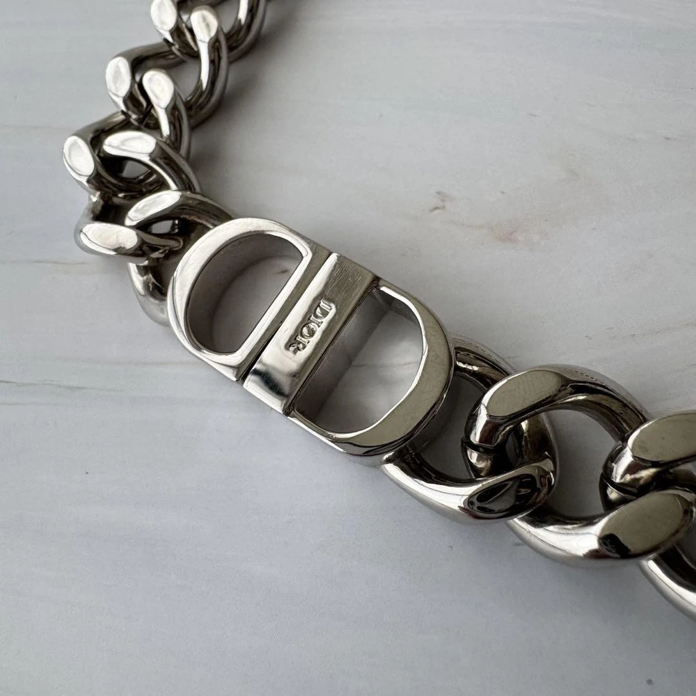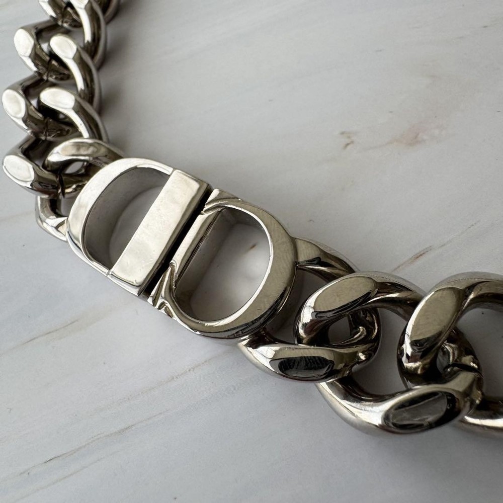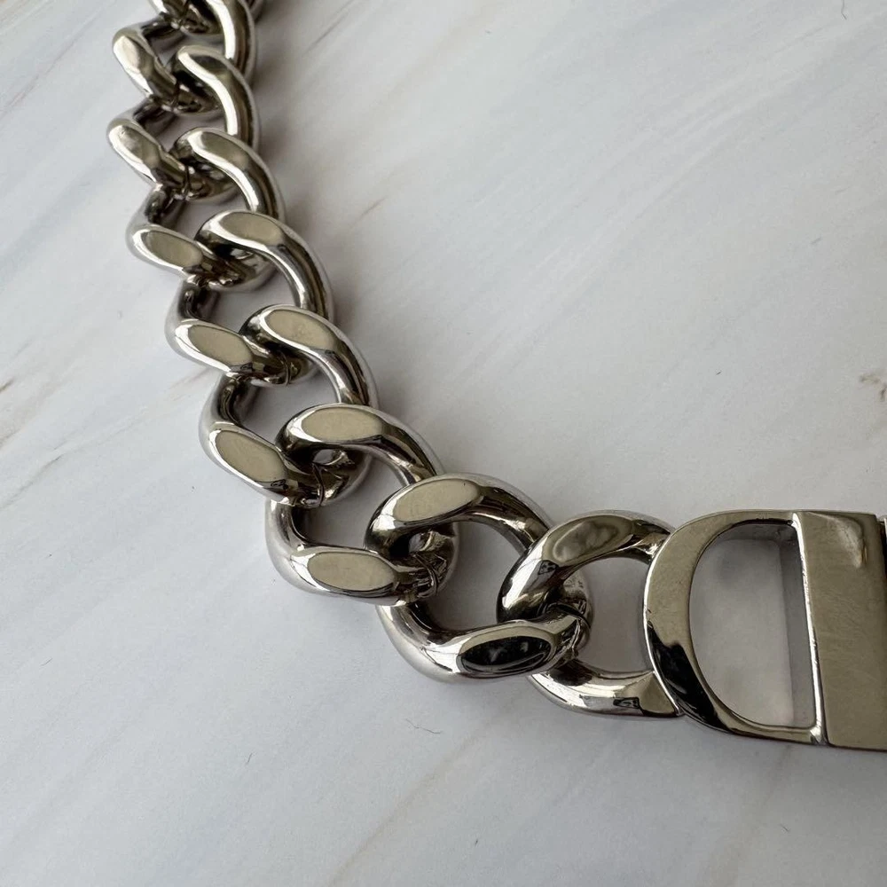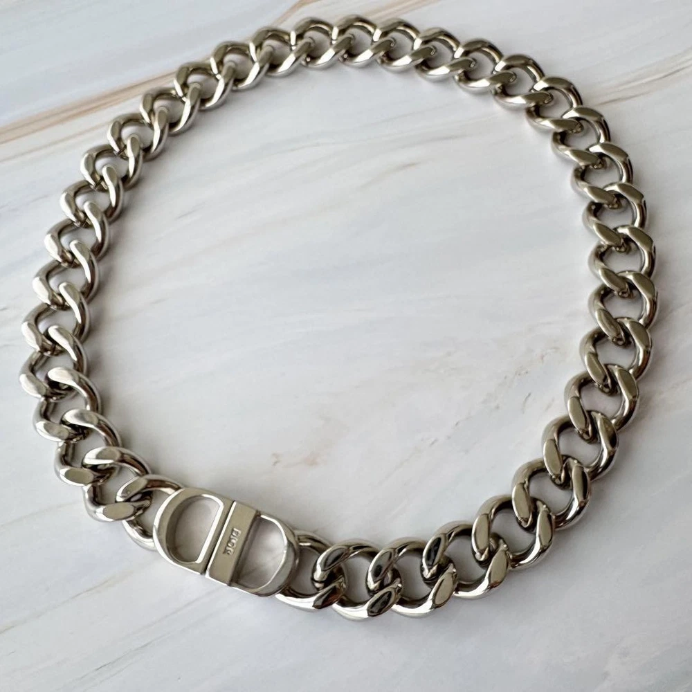 $ 635.9Christian Dior Rare Cd Diamond Chain Link Metal Necklace