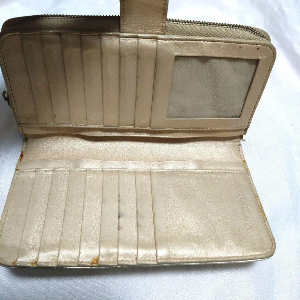 Rare Christiandior All-Over Pattern Gold Round Zipper Wallet Key Features ## Product Overview This is a rare Christian Dior all-over pattern gold round zipper wallet, showcasing a luxurious and distinctive design. Crafted with high-quality materials, this wallet combines elegance with functionality, making it a valuable addition to any collection or everyday accessory. ## Key Features and Benefits - Unique all-over pattern design featuring Christian Dior branding - Elegant gold-tone round zipper closure for secure storage - Compact size ideal for everyday use or as a collectible item - High-quality craftsmanship and materials typical of Christian Dior accessories - Perfect for fashion enthusiasts and collectors seeking authentic luxury items ## Technical Specifications and Details - Brand: Christian Dior - Item Type: Wallet - Style: Zipper Wallet - Pattern: All-Over Pattern - Material: [Material not specified in provided data; typically leather or coated fabric] - Color: Gold with pattern details - Closure: Round zipper - Dimensions: Approximate size – Width: 4.7 inches (12 cm), Height: 3.5 inches (9 cm) - Condition: [Condition not specified; assumed to be pre-owned or new, please verify] ## Product Condition Please refer to the detailed condition information provided in the listing. Items are inspected for authenticity and quality, with any notable flaws or signs of wear disclosed. ## Main Selling Points - Authentic Christian Dior accessory with a distinctive all-over pattern - Gold-tone round zipper for easy access and secure closure - Compact and stylish design suitable for daily use or display - Perfect for collectors of luxury designer wallets - High-quality craftsmanship ensuring durability and elegance ## Additional Information This wallet is a rare find for Christian Dior enthusiasts and collectors. Its unique pattern and luxurious gold finish make it stand out among designer accessories. Please review all details carefully and contact us with any questions regarding authenticity or condition. International buyers are welcome, and we ensure secure shipping and handling. Specifications Brand Christian Dior Country Japan Product Description Item Title Rare Christiandior All-Over Pattern Gold Round Zipper Wallet Payment Supports managed payments Please pay within 5 days after auction is finished. About Us We are located in Japan. It's our pleasure to make you happy by proposing our recommend item. If you have any questions or request about items, please feel free to ask us. International Buyers - Please Note: -Import duties, taxes, and charges are not included in the item price or shipping charges. These charges are the buyer's responsibility. -Please check with your country's customs office to determine what these additional costs will be prior to bidding/buying. -These charges are normally collected by the delivering freight (shipping) company or when you pick the item up - do not confuse them for additional shipping charges. -We do not mark merchandise values below value or mark items as - gifts - The US and International government regulations prohibit such behavior. Thank you for your understanding.