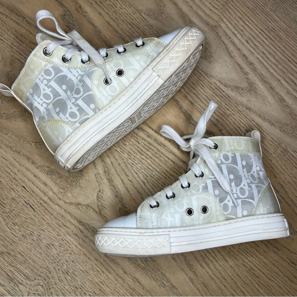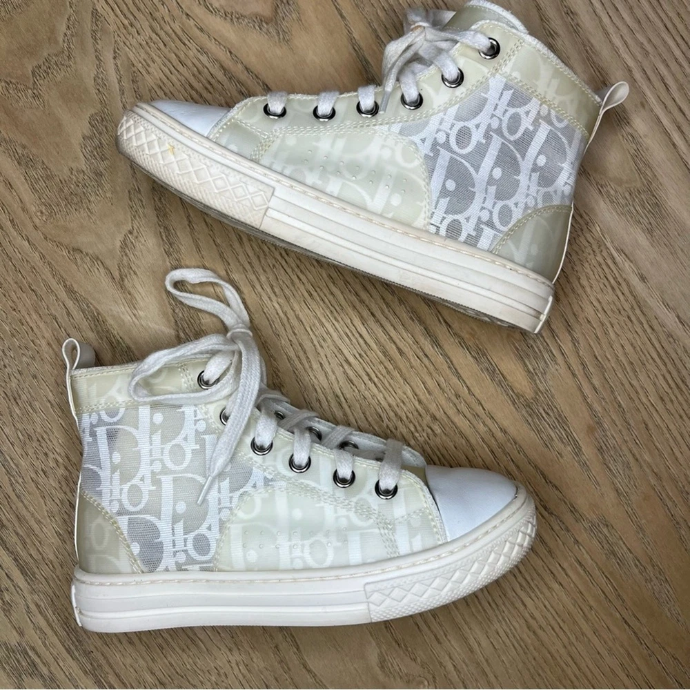 Christian Dior Kid’s B23 League High Top Oblique White Mesh Sneakers EU size 27 / US kid’s 9.5 minor wear/dirt from normal use-pictured Please review all photos!